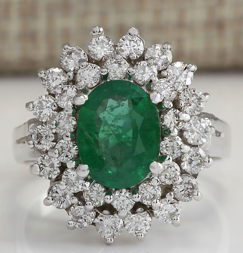 2.81 CTW Natural Emerald Diamond Ring 14K Solid White Gold