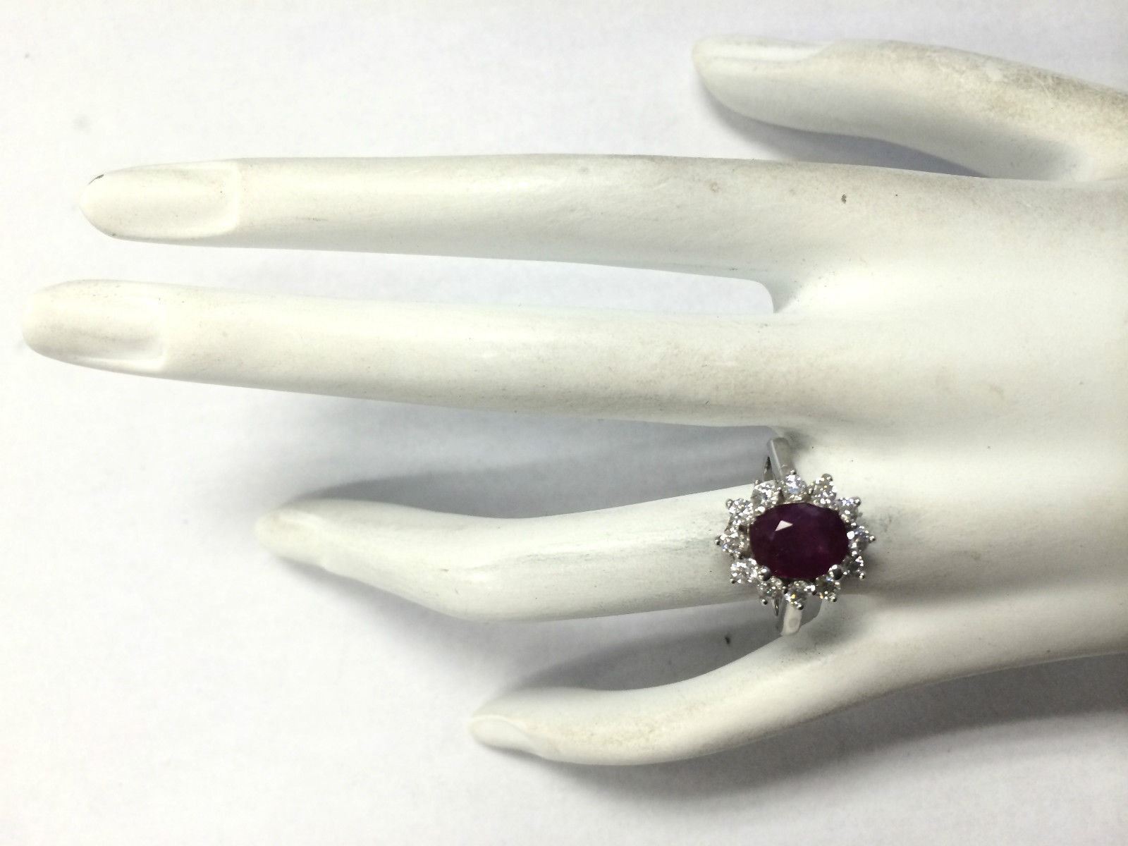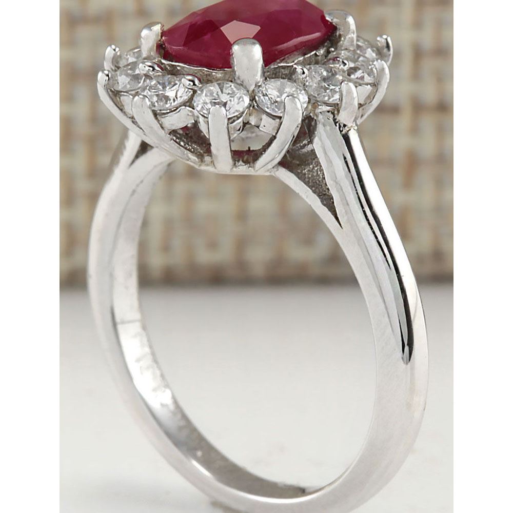 2.81 CTW Natural Red Ruby And Diamond Ring 14K Solid White Gold