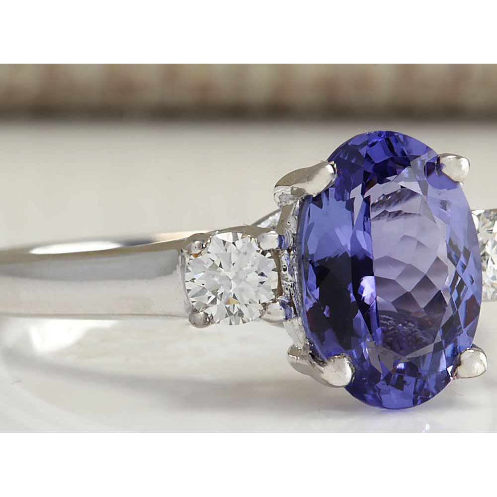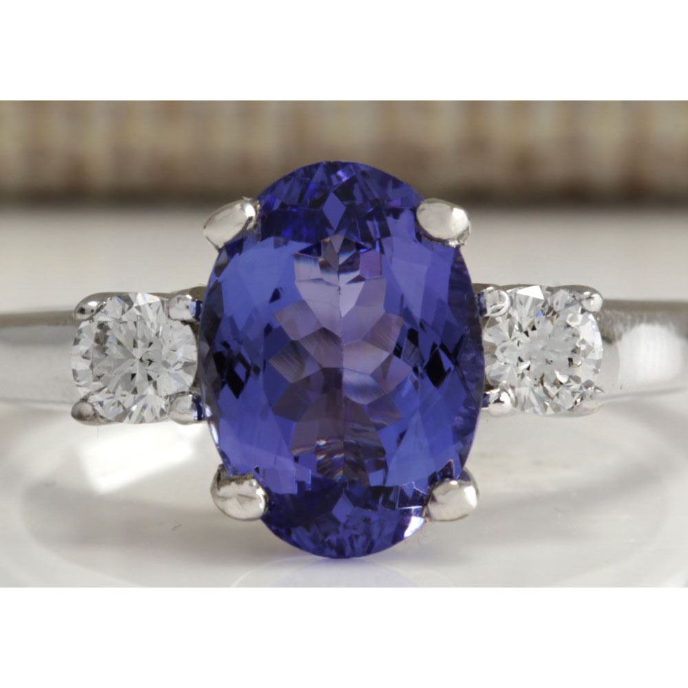 2.81 CTW Natural Tanzanite And Diamond Ring 14K Solid White Gold
