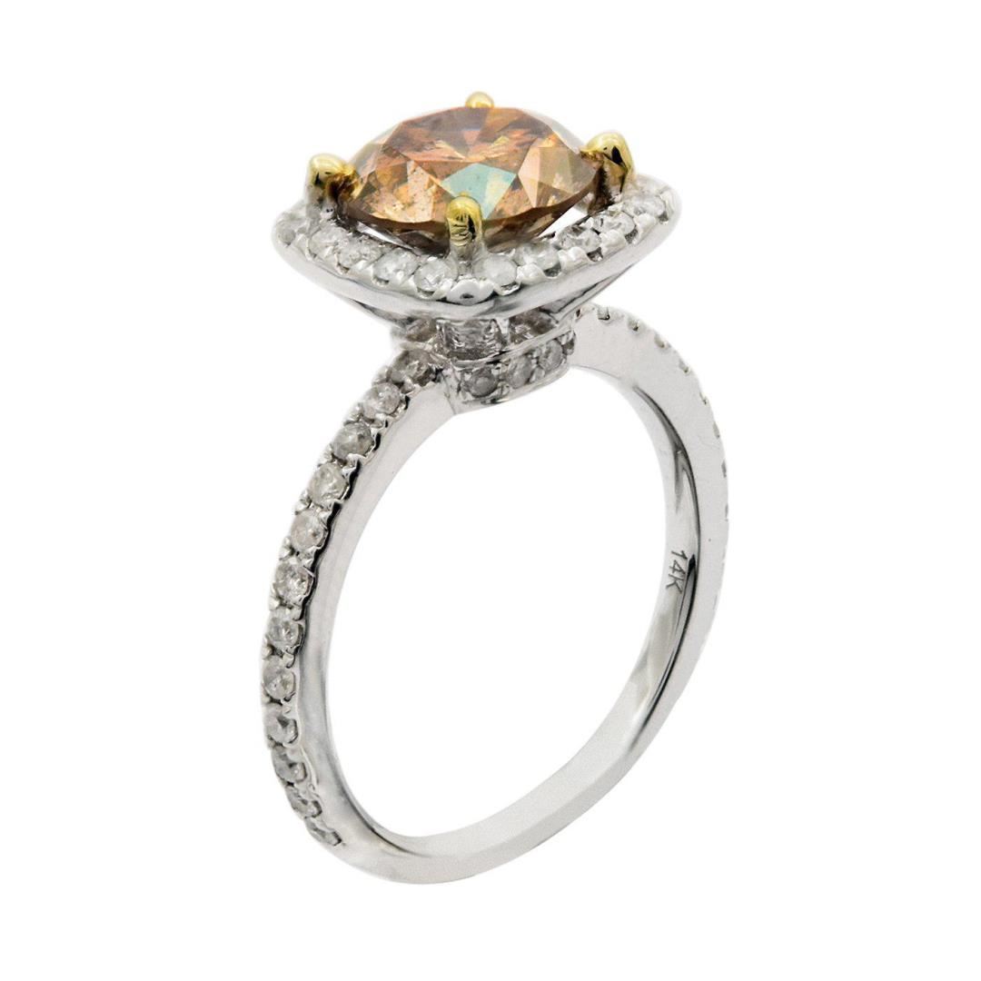 One electronically tested 14KT white gold ladies cast diamond ring with a bright polish finish. The featured diamond is set within a diamond bezel supported by diamond set shoulders, completed by a one and one-half millimeter wide band. Trademark is Orianne. Identified with markings of "14K". Condition is new, good workmanship. One prong set round brilliant cut diamond, measuring 8.82 - 8.86 x 5.64mm exact weight 2.81ct. GIA Color Diamond Report attached. Graded loose for color prior to setting in the GIA Laboratory, Report #2161000752. Clarity I-1 Depth 63.8% Table 61.1% Sixty-Four prong set round brilliant cut diamonds, measuring 1.50 - 1.30 x 0.84mm (depth est.) approximate total weight of 64 Stones = 0.76ct. Graded in the setting. Clarity I-1 to I-3 Color H - J