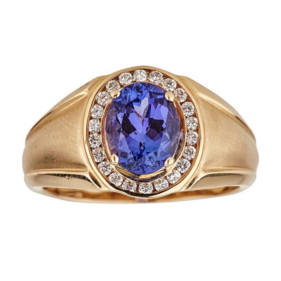 One Tanzanite and Diamond Ring featuring: 14KT Yellow Gold with a total weight of 7.98 grams, Tanzanite with a total weight of 2.81ct, and 22 Diamonds with a total weight of 0.32ctw.