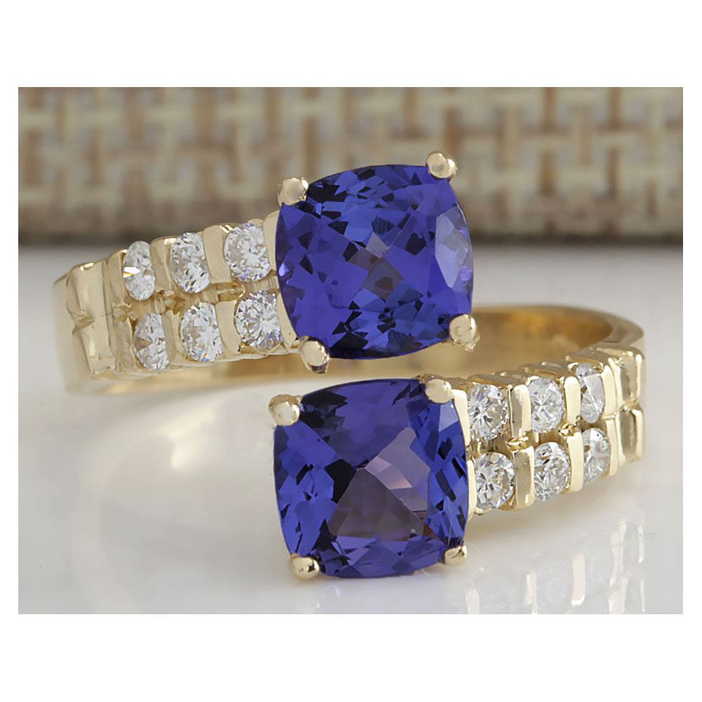 2.82 CTW Natural Blue Tanzanite And Diamond Ring In 14K Solid Yellow Gold
