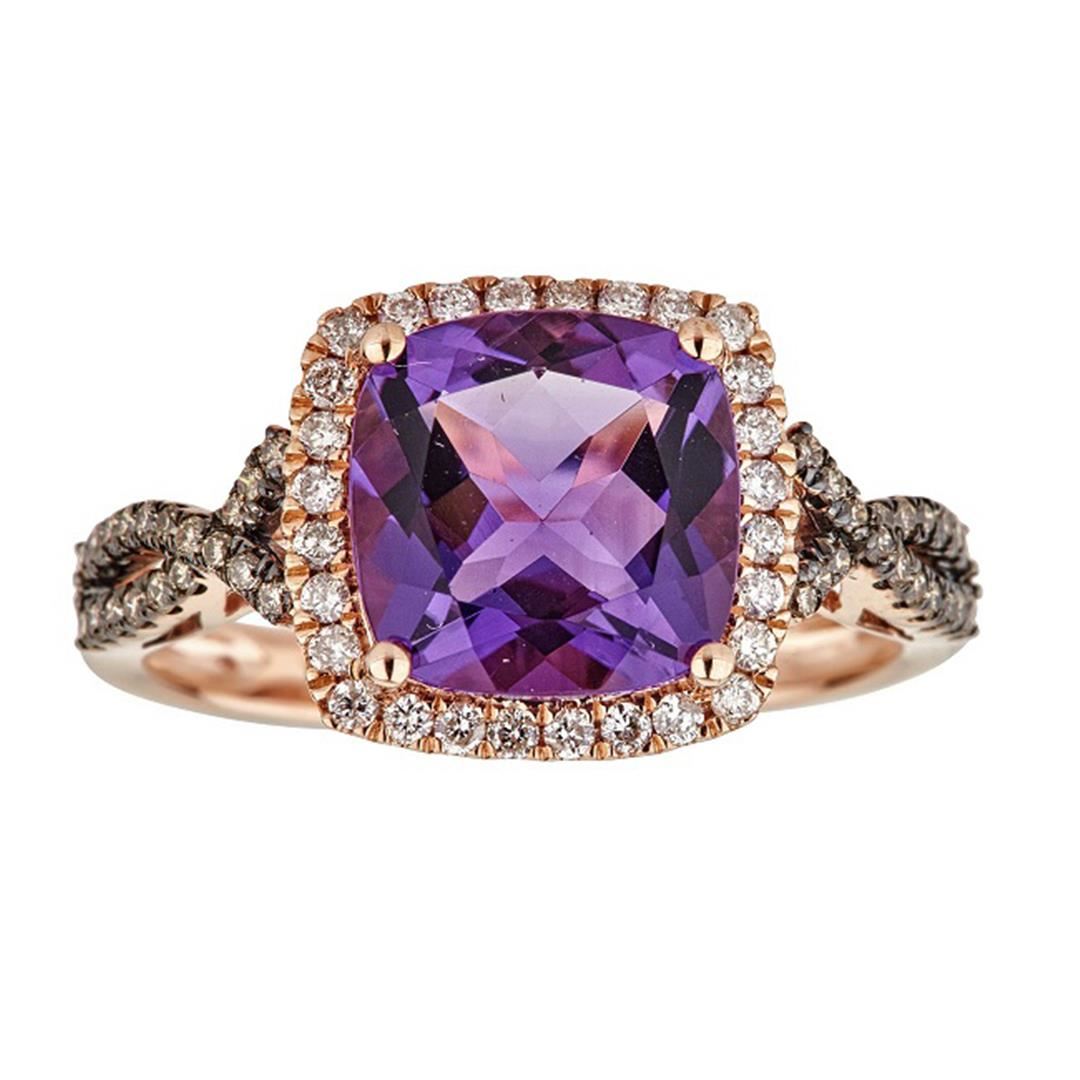 One Ring featuring: 10KT Rose Gold weighing 2.4 grams containing Amethyst with an approximate weight of 2.82ct, Brown Diamond with an approximate weight of 0.16ct, and Diamond with an approximate weight of 0.2ct.