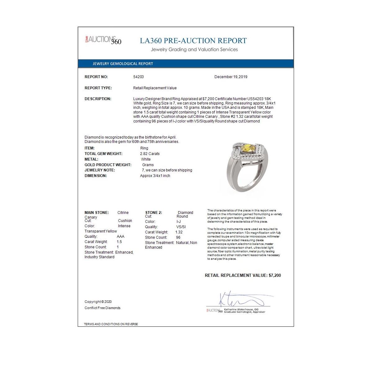 REF-163R3K - SKU: 54203 ---- 2.82 ctw Canary Citrine & Diamond Ring 18K White Gold