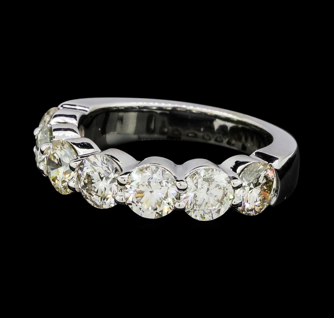 One electronically tested 14KT white gold lady's cast 7-stone straight line ring with a bright polish finish. The featured lady's ring has a shank measuring 3.14 millimeters wide. Identified with markings of '14K'. Condition is new, good workmanship. Containing: Seven prong set round brilliant cut diamonds, measuring 4.70 - 4.60 x 2.88mm (depth est.) approximate total weight of 7 Stones = 2.82ct. Graded in the setting. Color H - J Clarity SI-1 to I-1 Cut Good. Total Weight of Diamonds 2.82ct.. Total Weight of Ring 5.80gm GAS Appraised at $11850.00. GAS Appraised at $11,850.00.