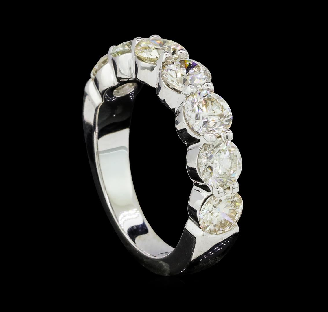 One electronically tested 14KT white gold lady's cast 7-stone straight line ring with a bright polish finish. The featured lady's ring has a shank measuring 3.14 millimeters wide. Identified with markings of '14K'. Condition is new, good workmanship. Containing: Seven prong set round brilliant cut diamonds, measuring 4.70 - 4.60 x 2.88mm (depth est.) approximate total weight of 7 Stones = 2.82ct. Graded in the setting. Color H - J Clarity SI-1 to I-1 Cut Good. Total Weight of Diamonds 2.82ct.. Total Weight of Ring 5.80gm GAS Appraised at $11850.00. GAS Appraised at $11,850.00.