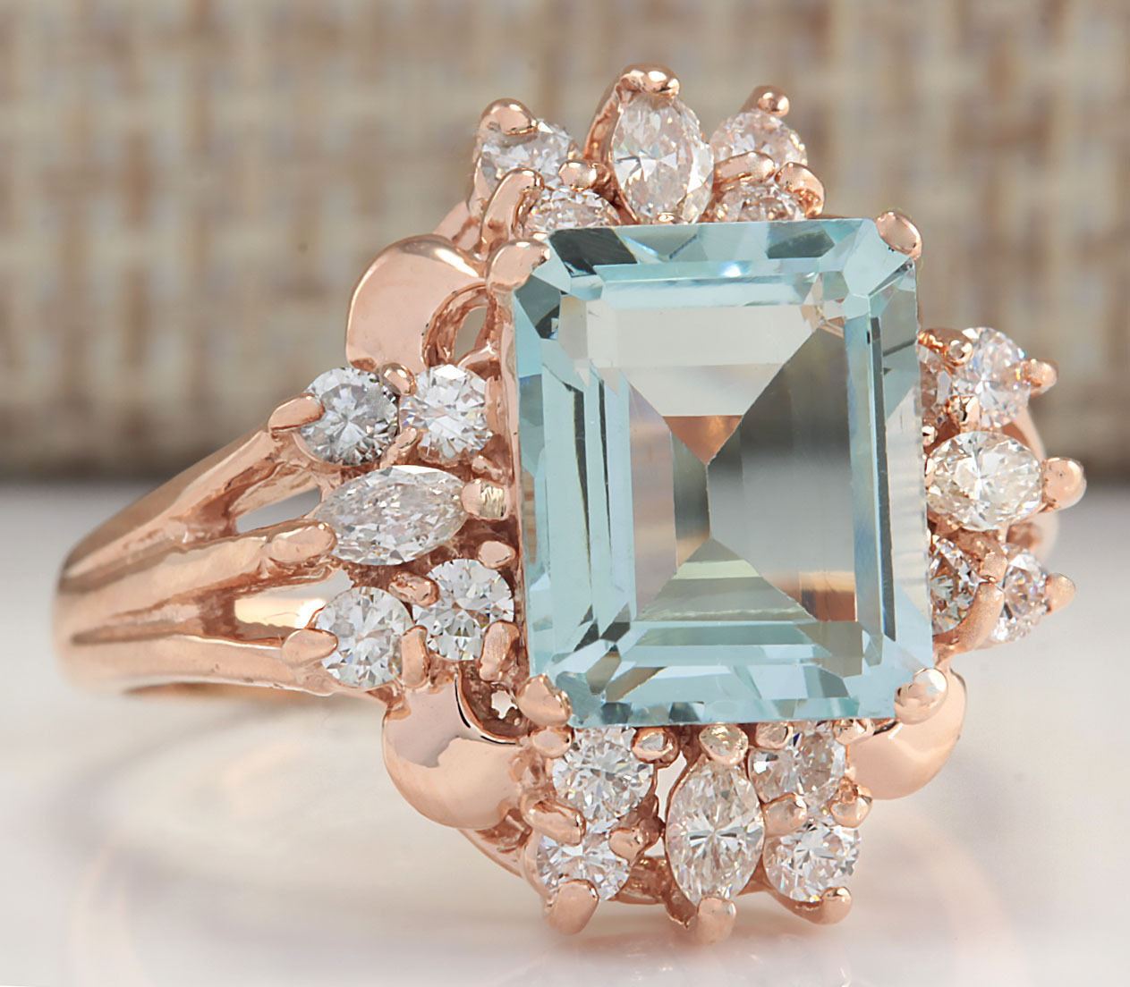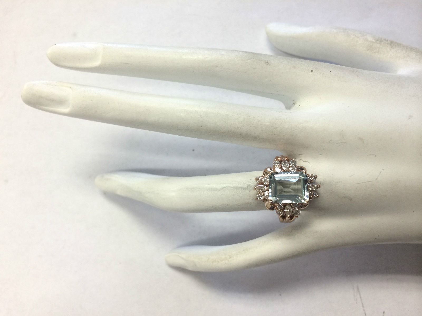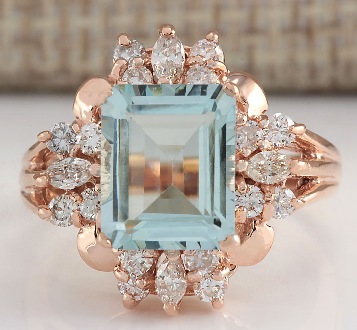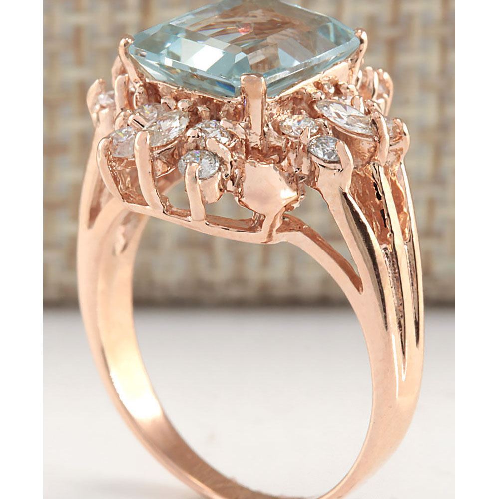 2.83 CTW Natural Blue Aquamarine Diamond Ring 18K Solid Rose Gold