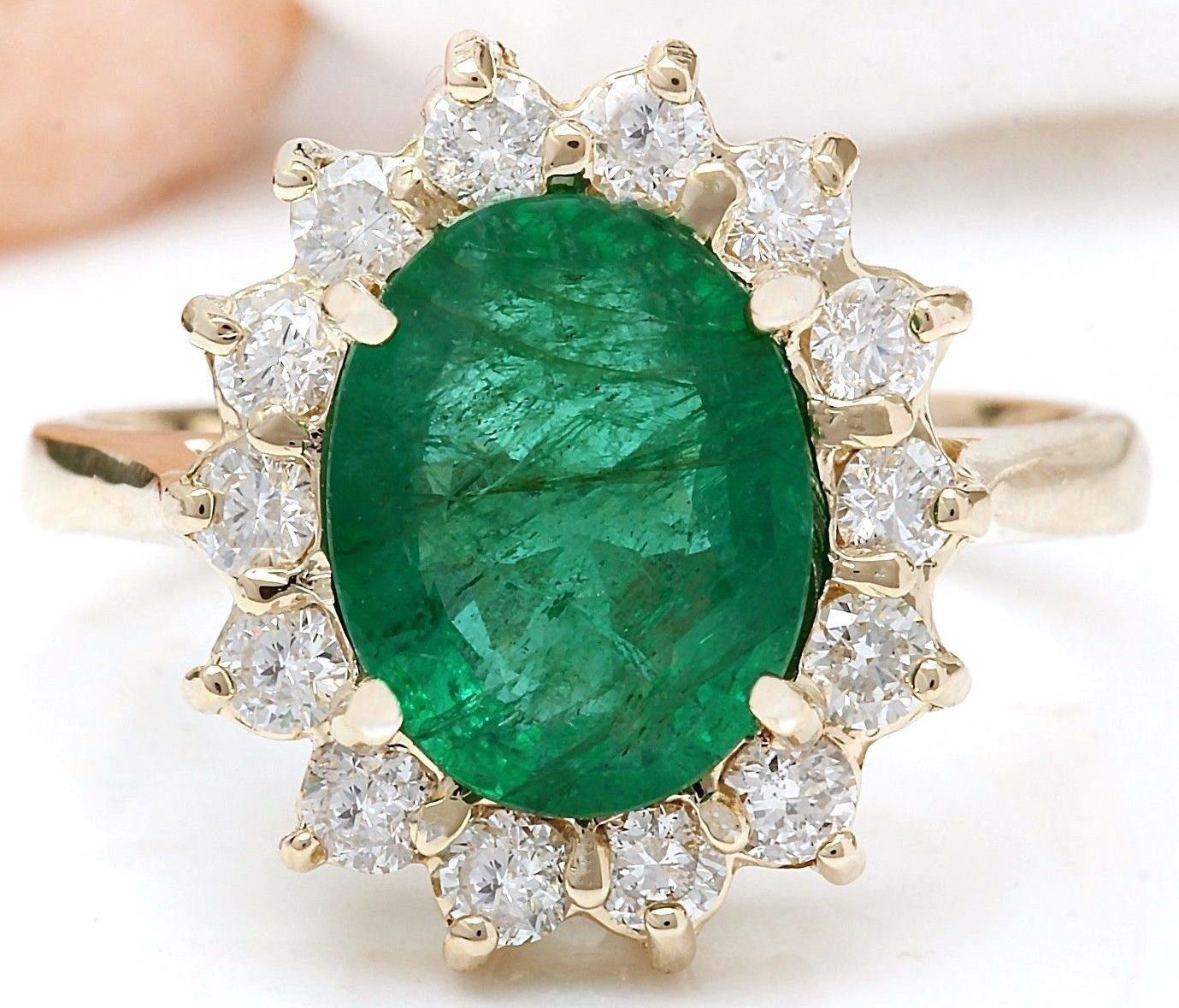 2.83 Carat Natural Emerald 18K Solid Yellow Gold Diamond Ring