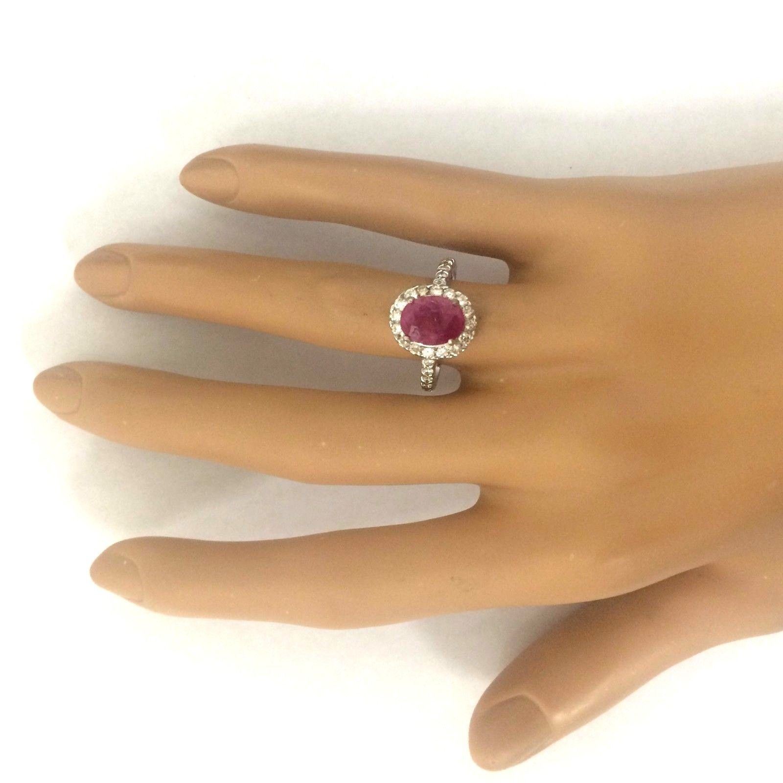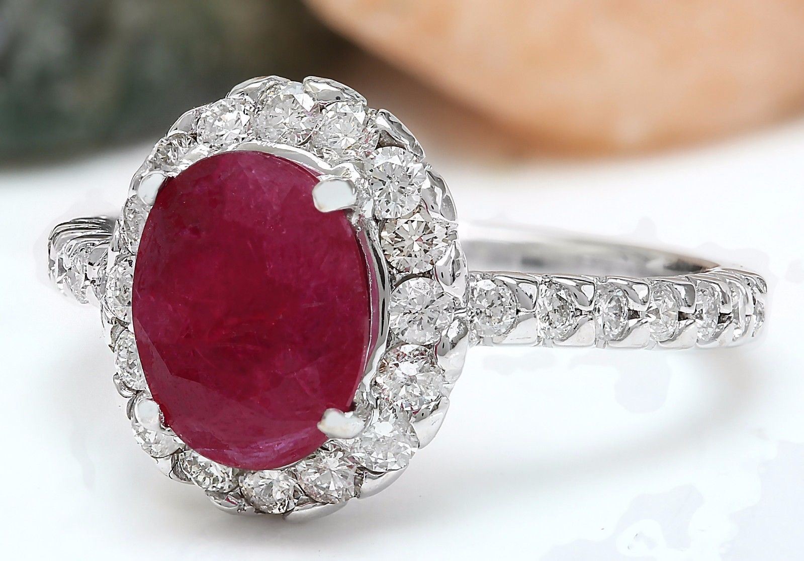 2.83 Carat Natural Ruby 18K Solid White Gold Diamond Ring