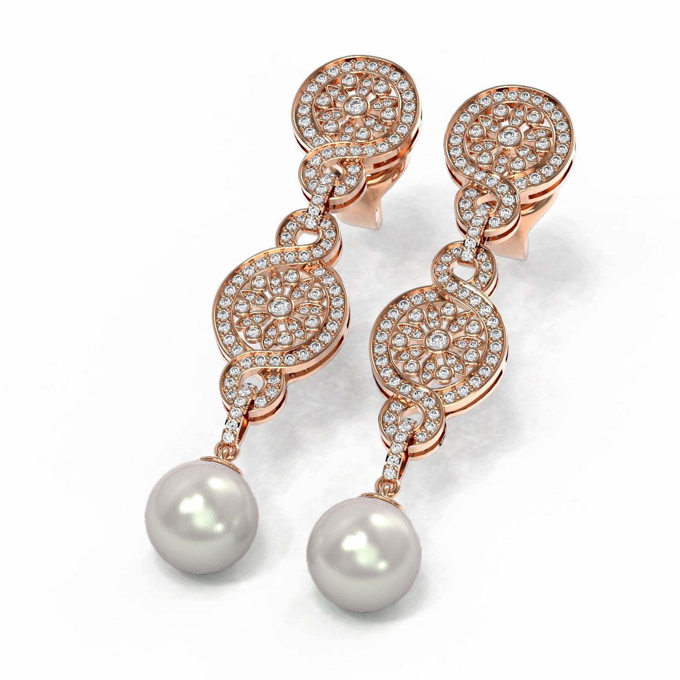 REF-342A4N - SKU: 55479 ---- 2.83 ctw Diamond & Pearl Earrings 18K Rose Gold