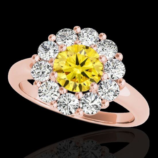 REF-354F5N -34440 ---- 2.85 CTW Certified Si/I Fancy Intense Yellow Diamond Solitaire Halo Ring 10K Rose Gold ---- Luxury Designer Brand Ring Appraised at $21,450 Certificate Number US34440 10k Rose gold, Ring Size is 7, Ring measuring approx. Uniform, weighing in total approx. 6.4 grams. Made in the USA and is stamped 10k, Main stone 1.5 carat total weight containing 1 pieces of Intense Fancy Yellow color with SI quality Round shape cut Diamond , Stone #2 1.35 carat total weight containing 10 pieces of H-I color with VS/SI quality Round shape cut Diamond