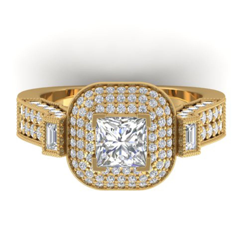 REF-486W2H - SKU: 30446 ---- 2.85 ctw Princess VS/SI Diamond Art Deco Micro Ring 14k Yellow Gold