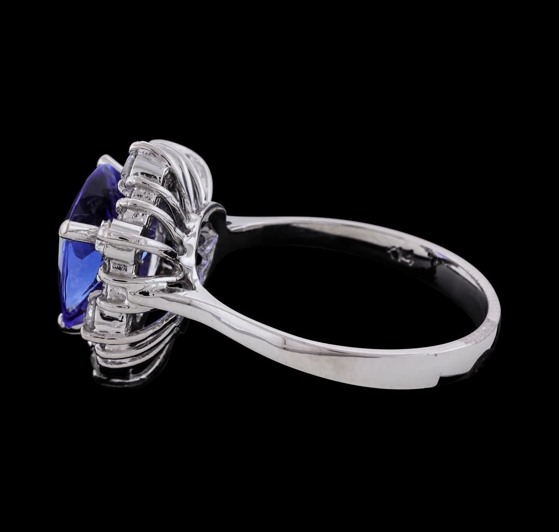One ring : 14KT white gold weighing 3.90gm featuring tanzanite with a total weight of 2.85ct and diamonds weighing 0.43ctw.