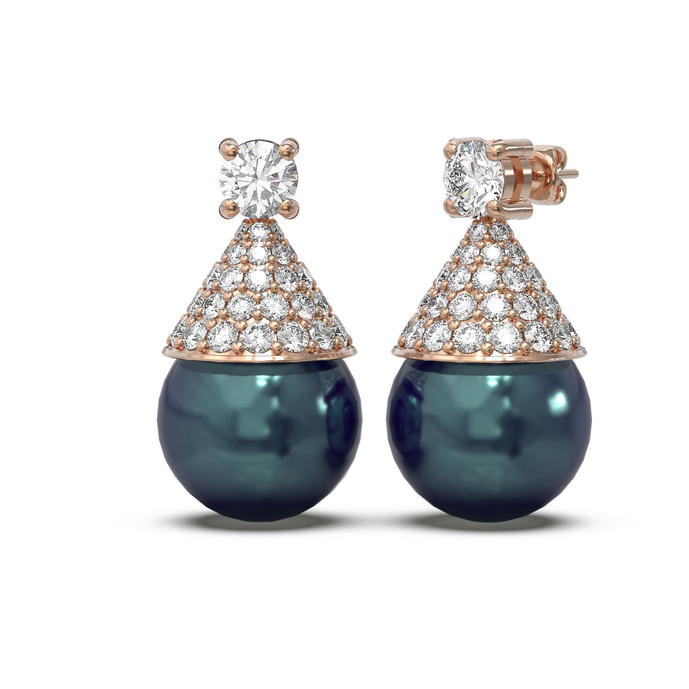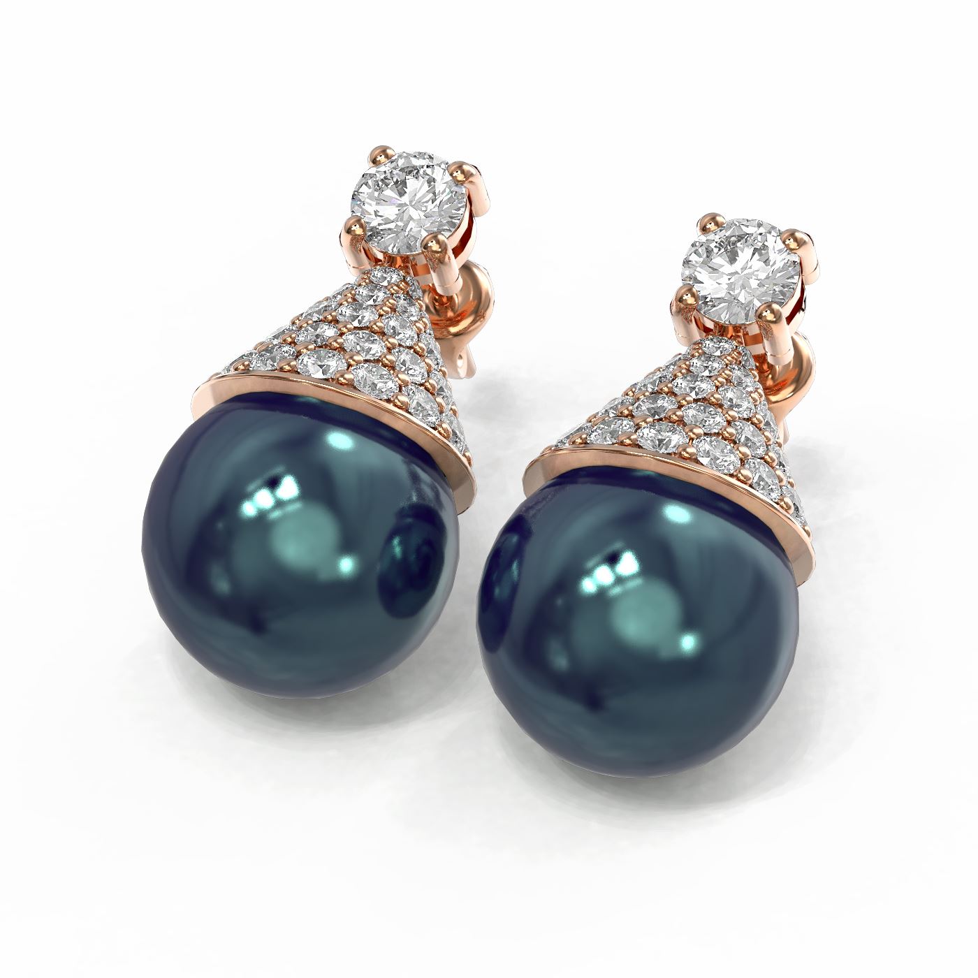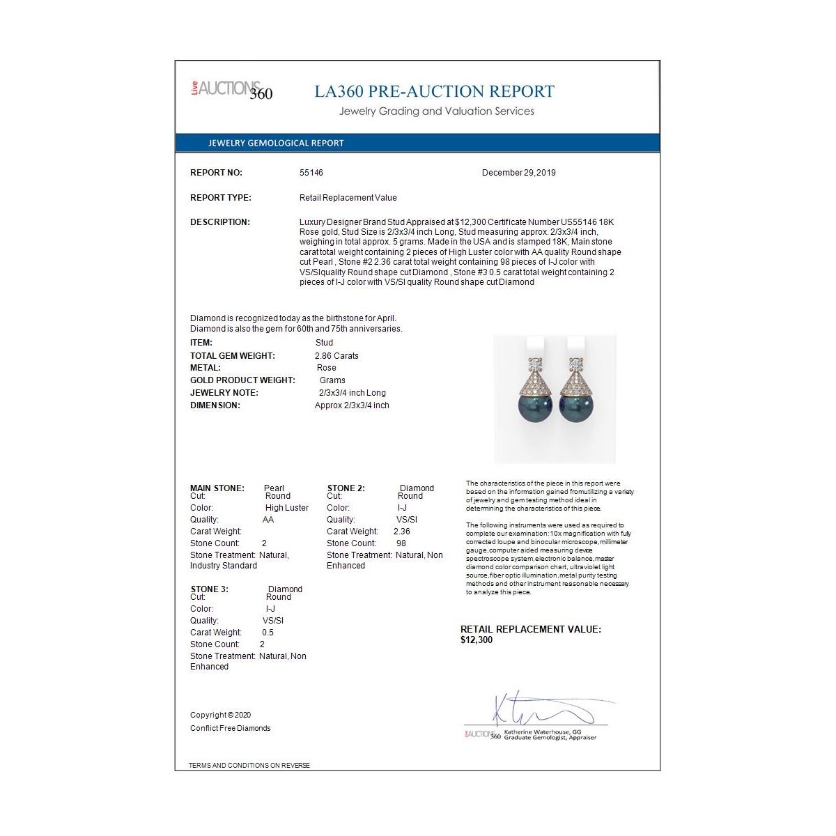 REF-248F9M - SKU: 55146 ---- 2.86 ctw Diamond & Pearl Earrings 18K Rose Gold