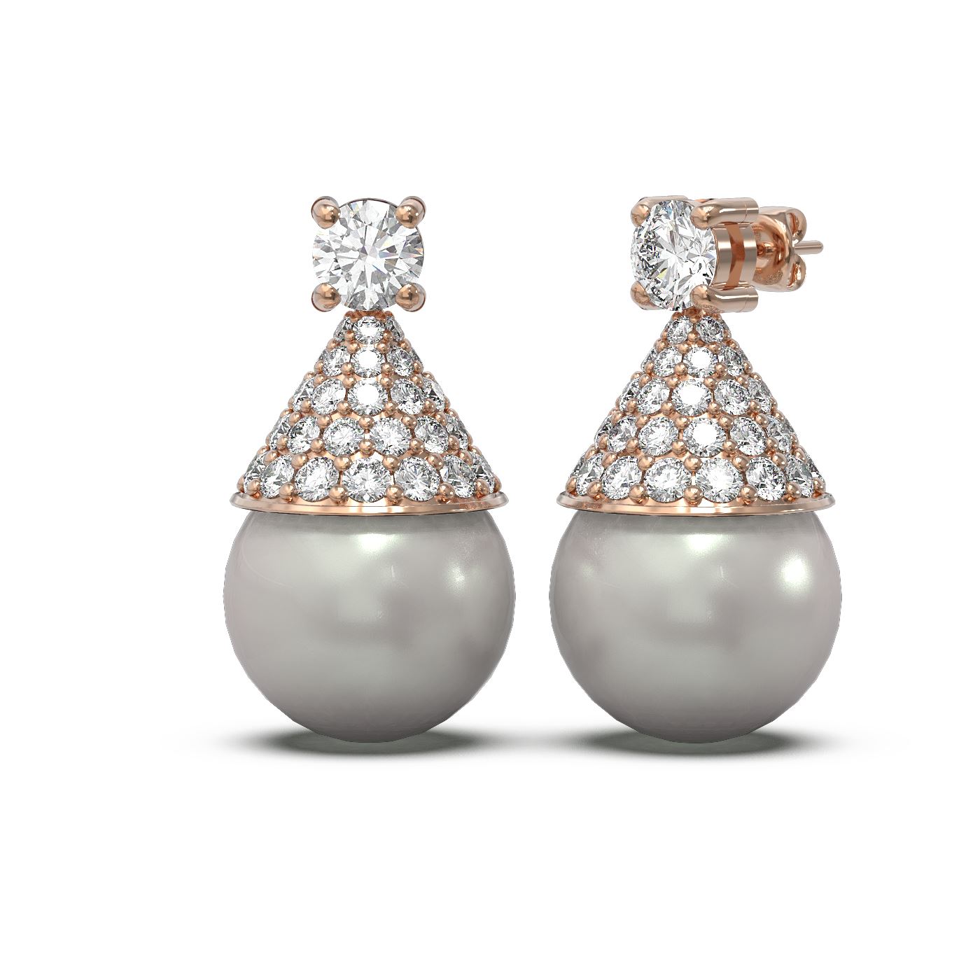 SKU: 55149 ---- 2.86 ctw Diamond & Pearl Earrings 18K Rose Gold
