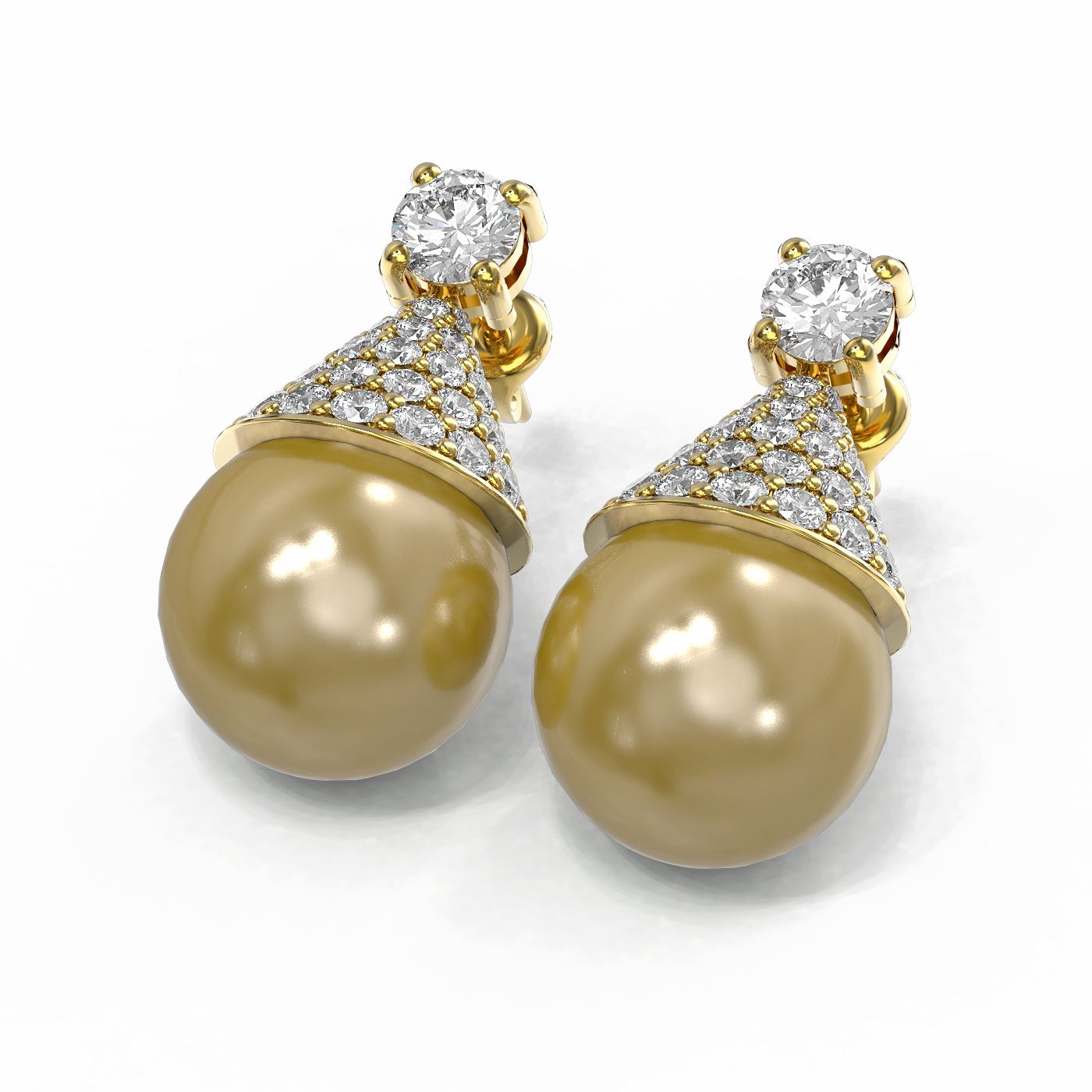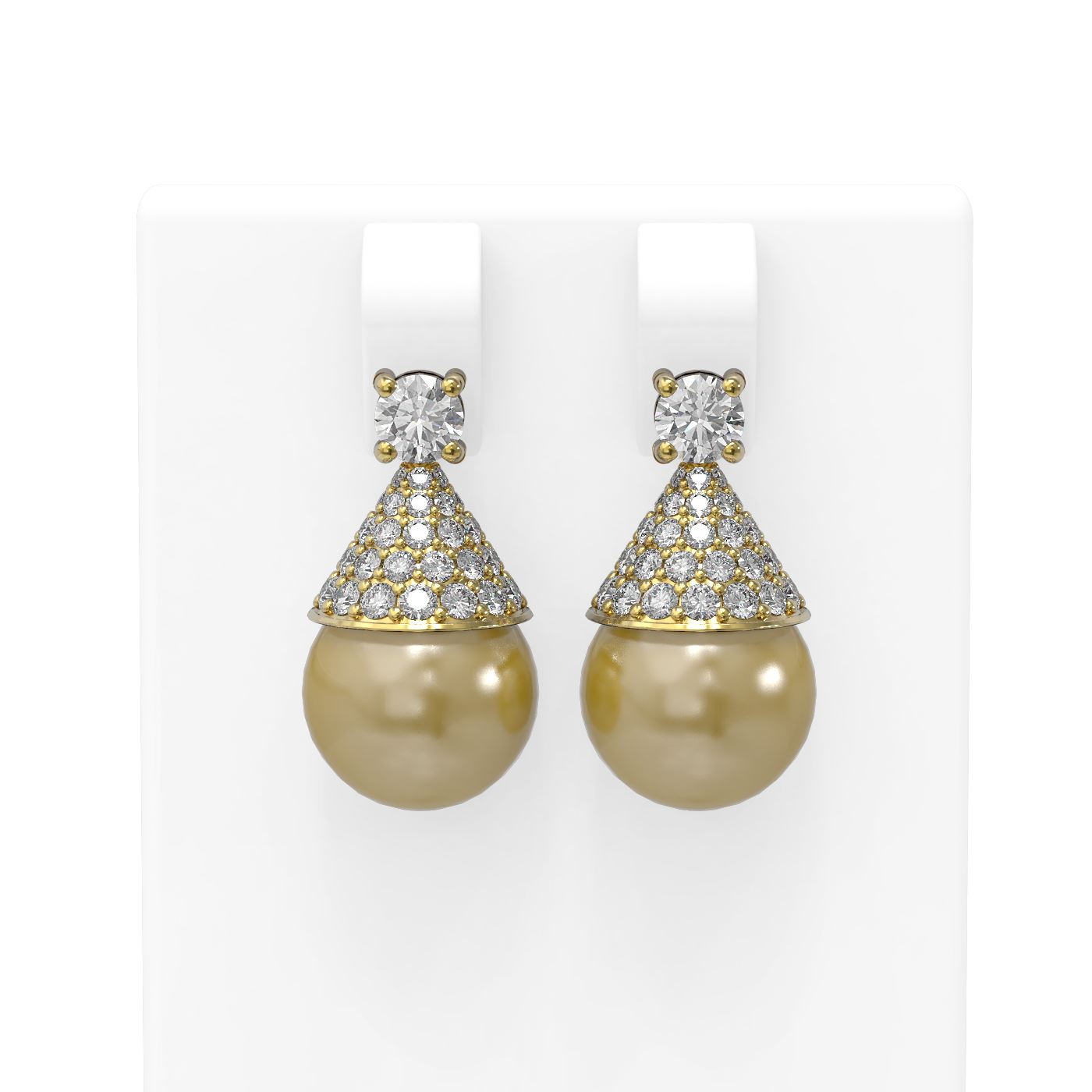 SKU: 55144 ---- 2.86 ctw Diamond & Pearl Earrings 18K Yellow Gold