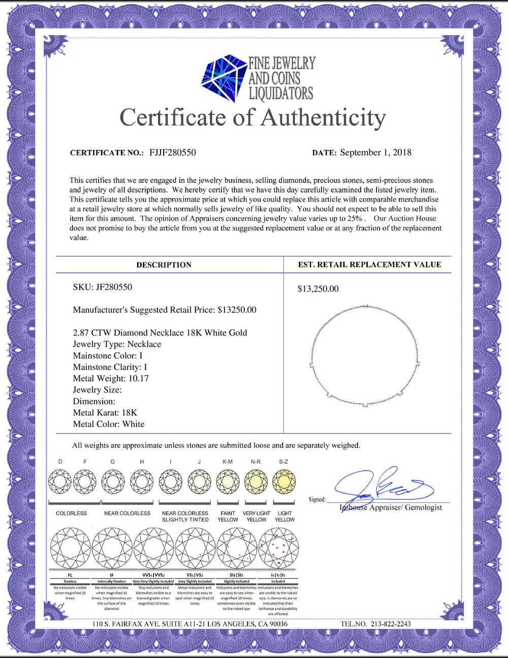 REF-174W3H - JF280550 ---- 2.87 CTW White Round Diamond Necklace 18K White Gold
