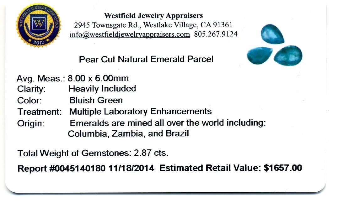 One 2.87 ctw Pear Cut Natural Emerald Parcel.
