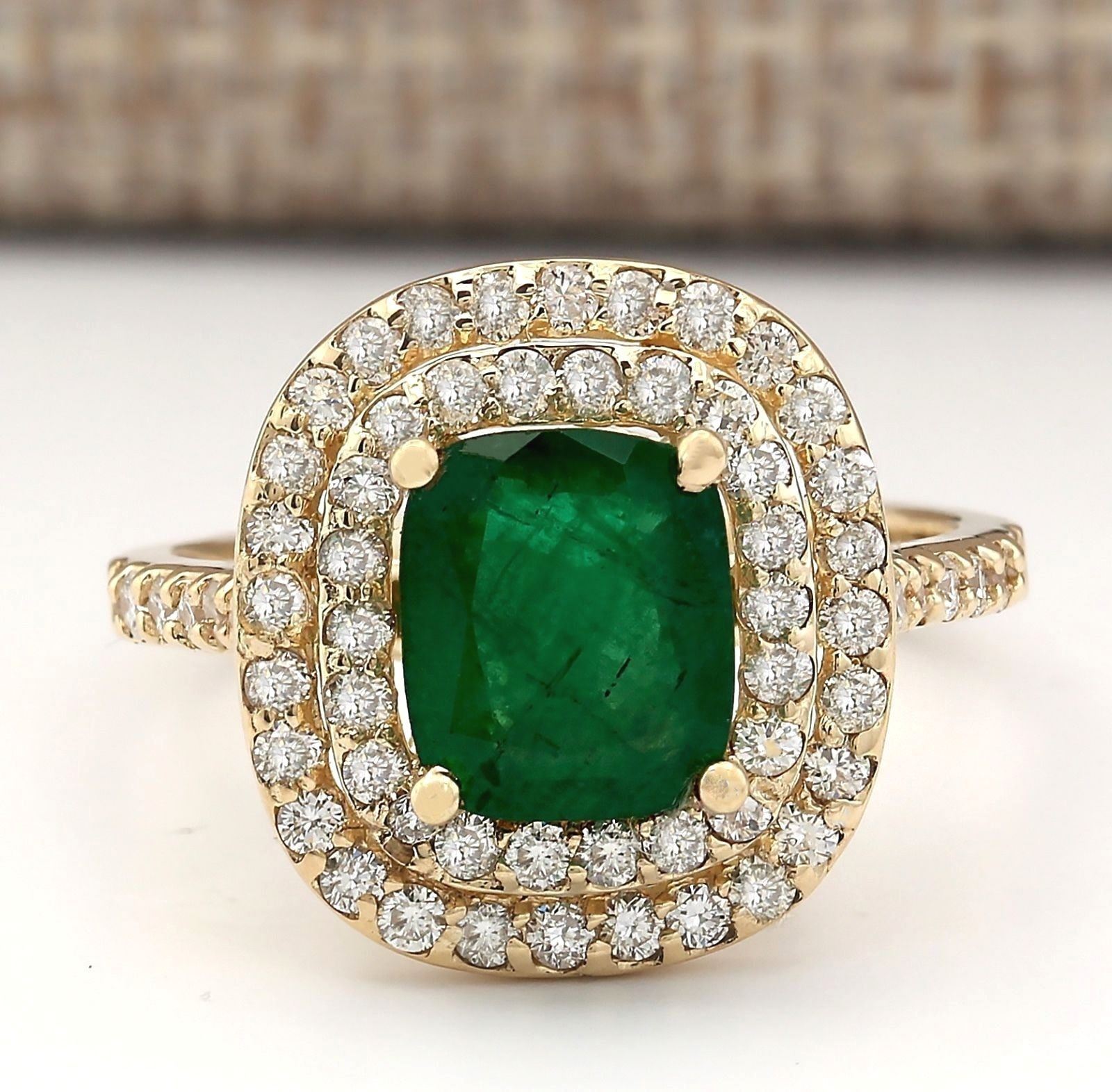 2.88 CTW Natural Emerald And Diamond Ring In 18K Yellow Gold