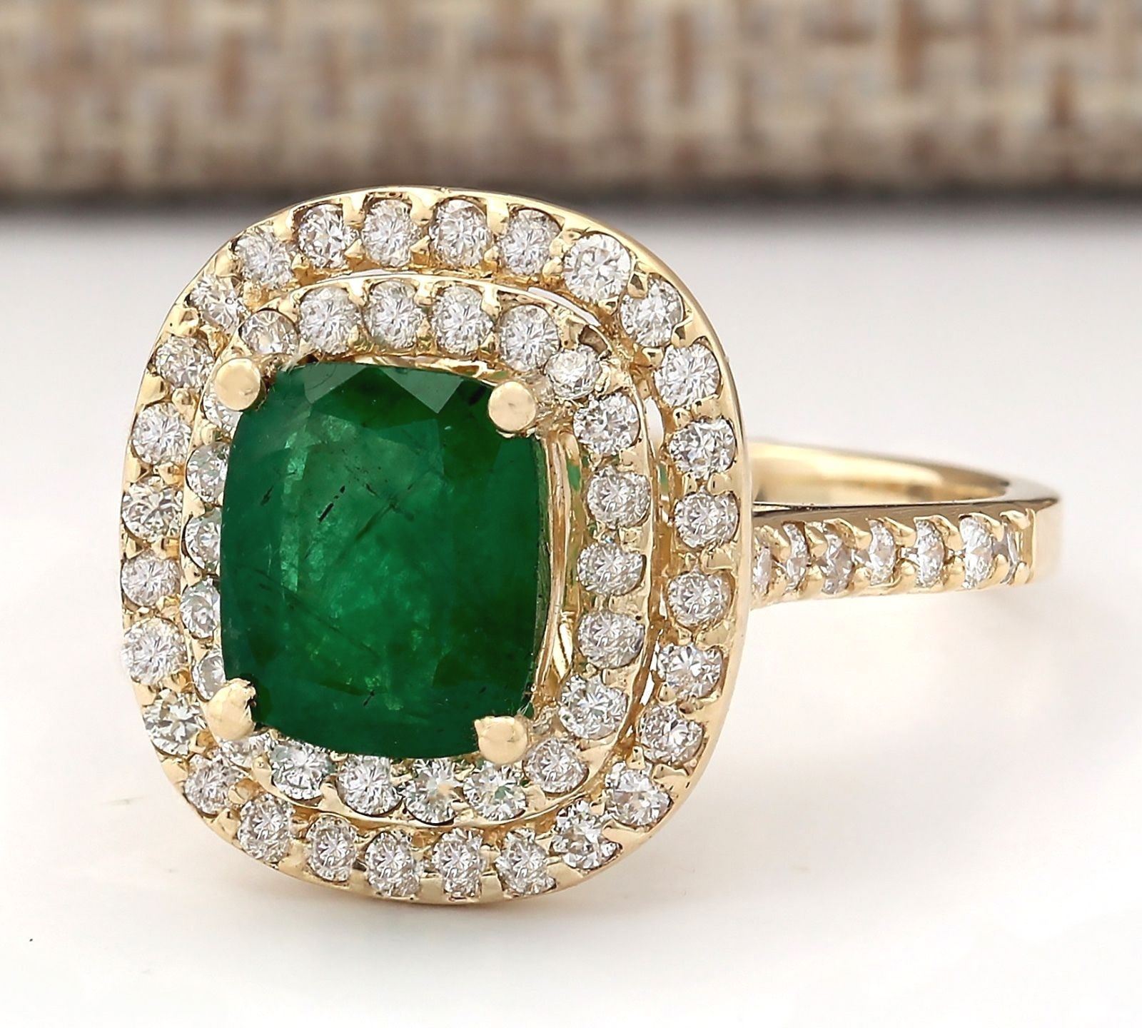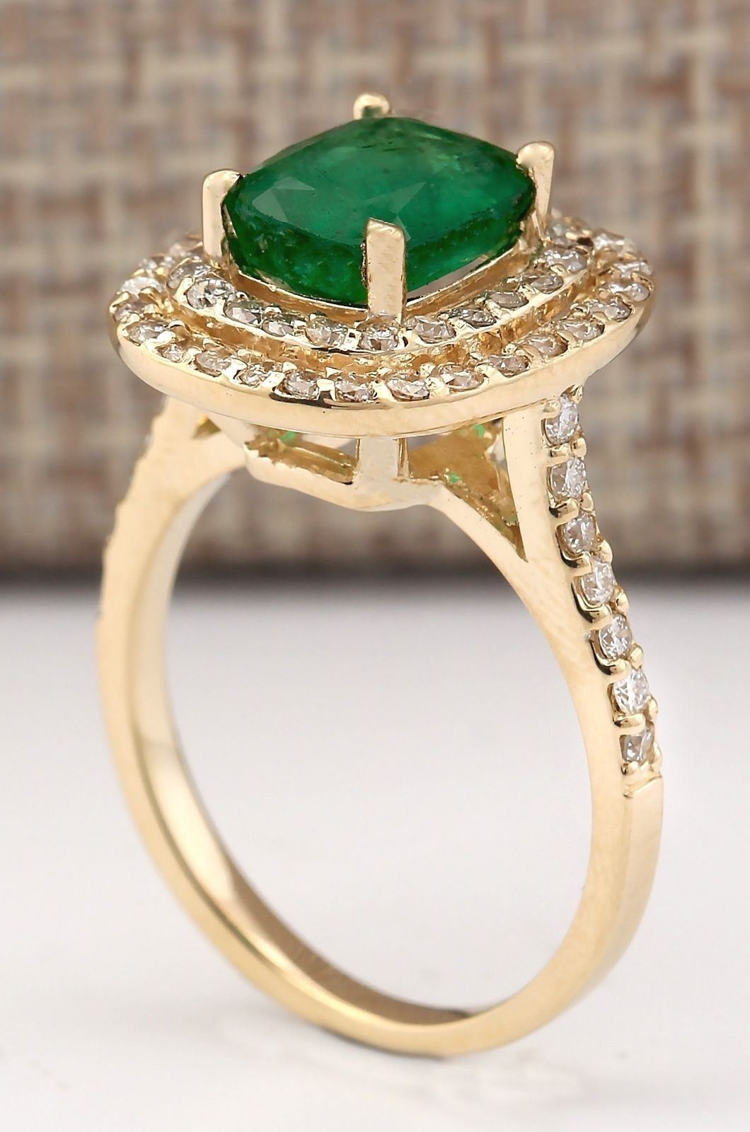 2.88 CTW Natural Emerald And Diamond Ring In 18K Yellow Gold