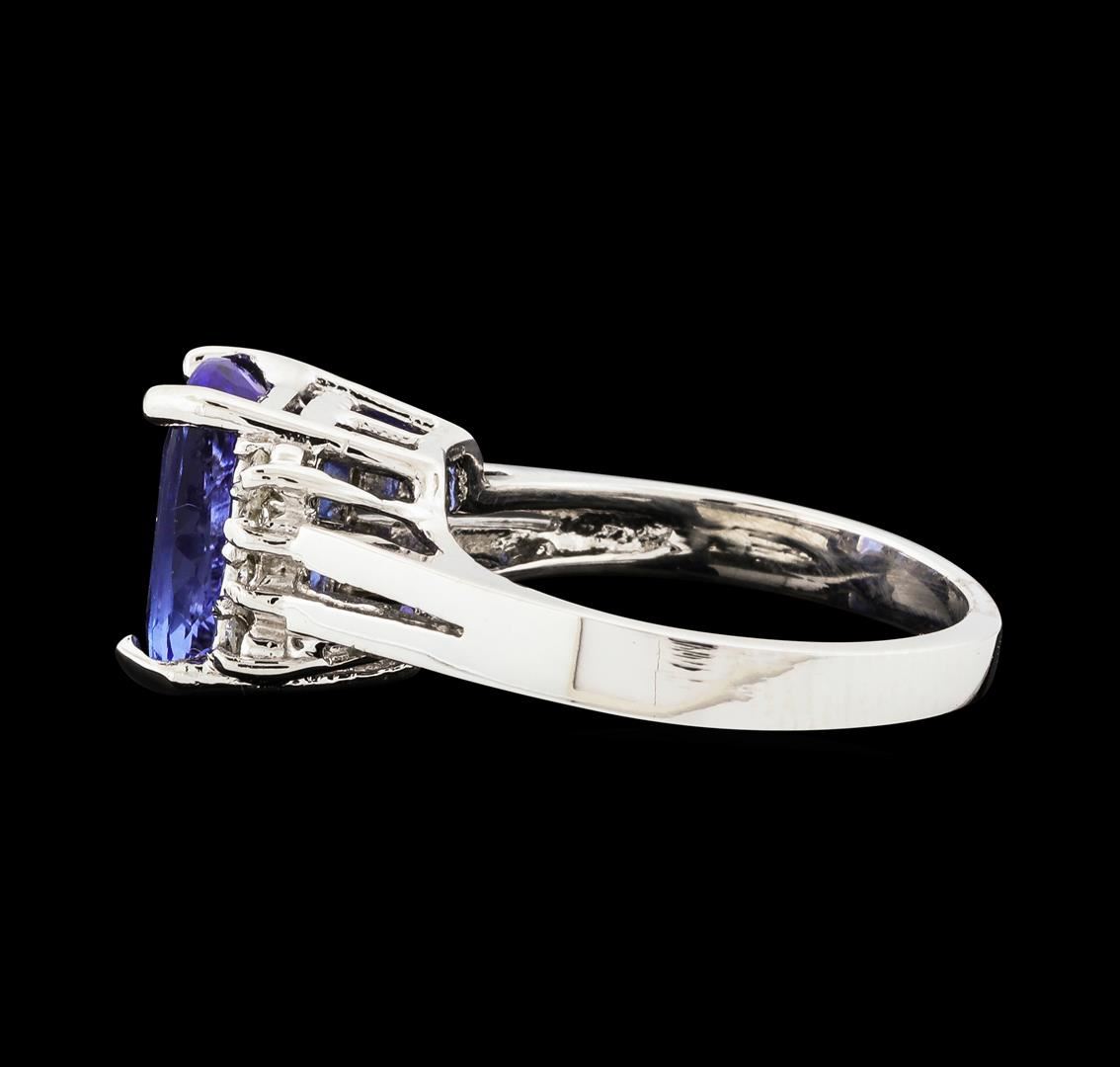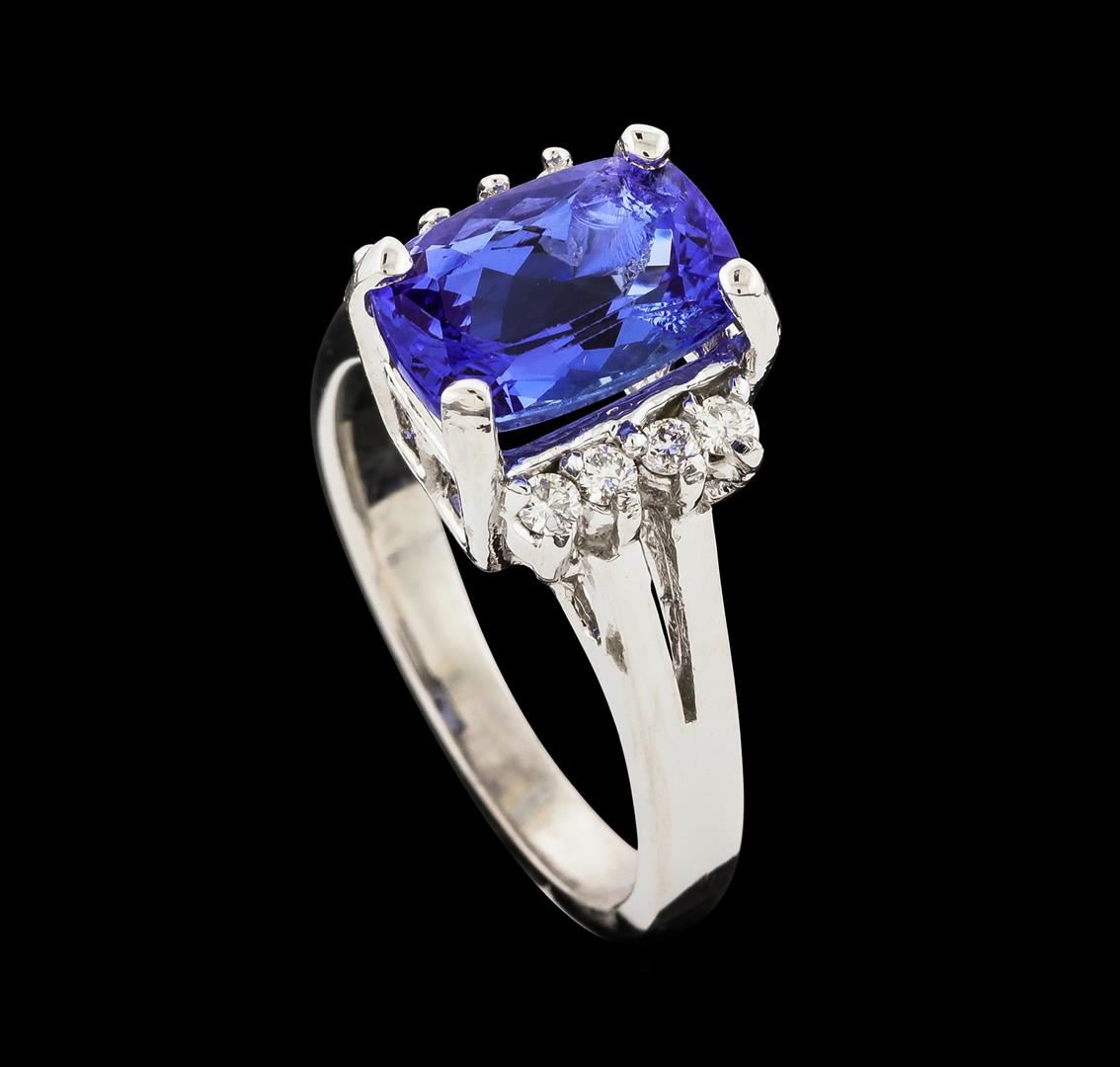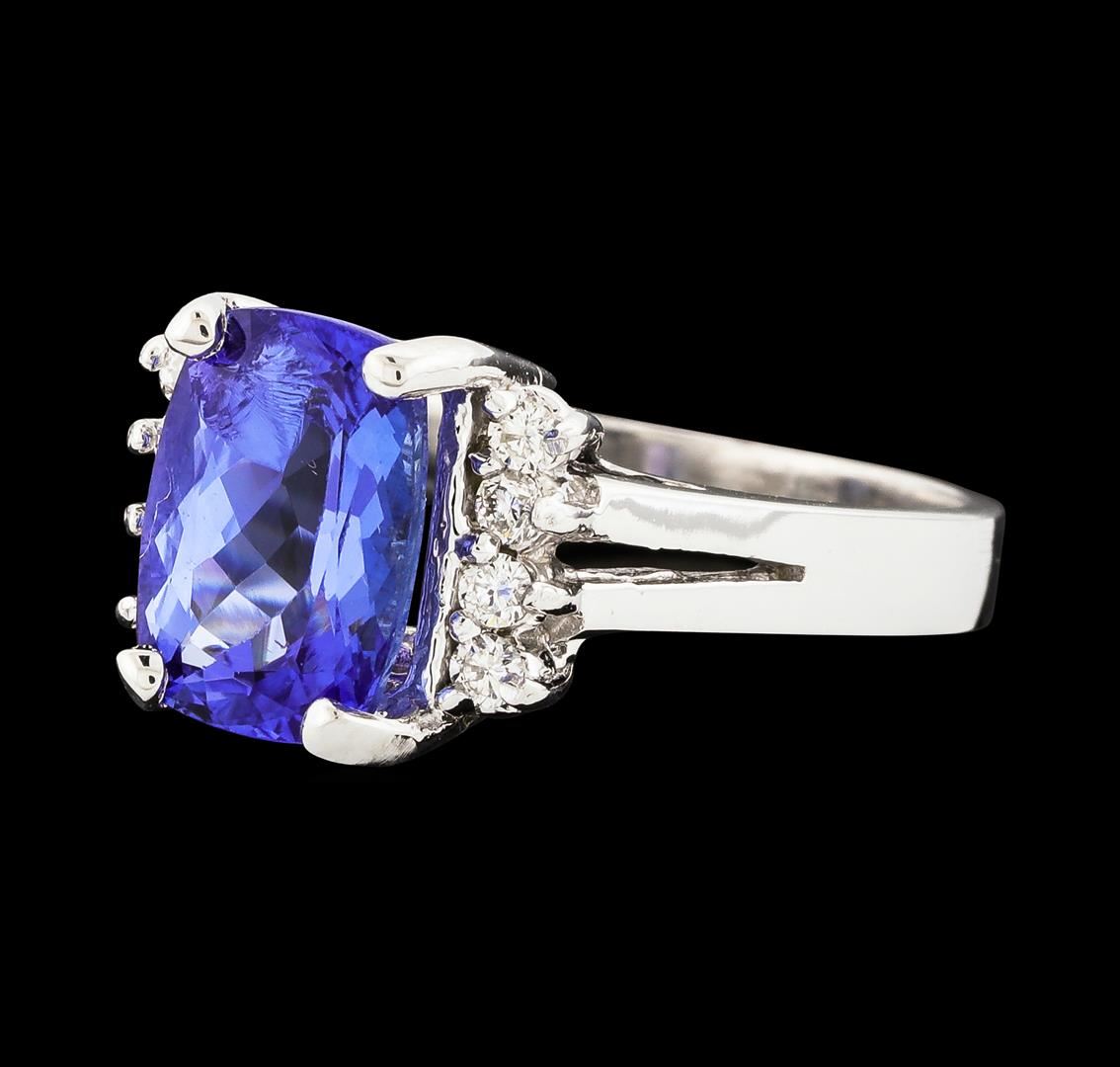 One ring : 14KT white gold weighing 4.79gm containing one tanzanite center stone with a total weight of 2.88ct and side diamonds weighing 0.18ctw.