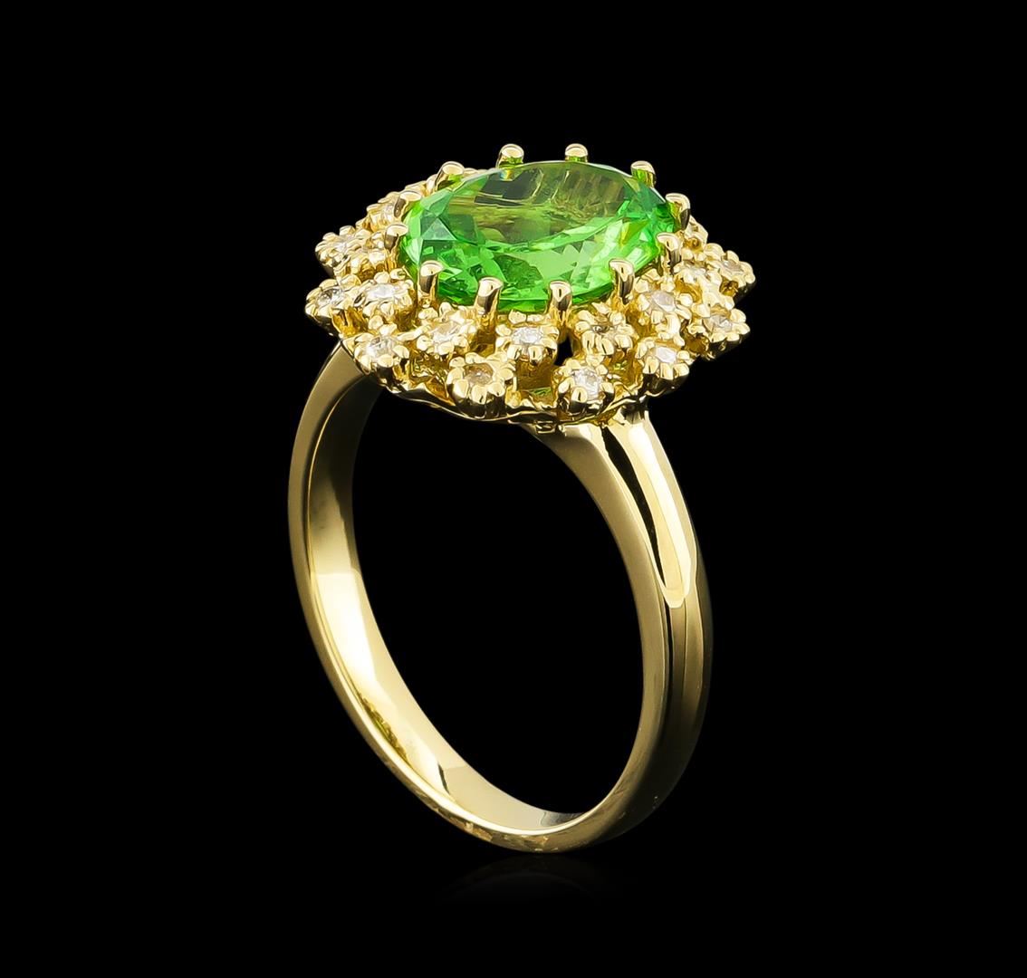 One Ring featuring: 14KT Yellow Gold weighing 5.43 grams containing one Tsavorite center stone with a total weight of 2.88ct and Diamonds with a total weight of 0.24ct.