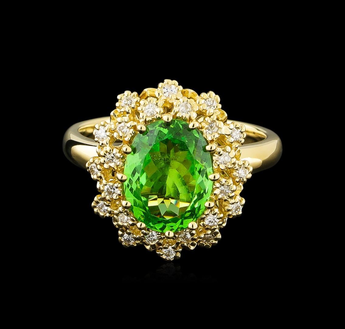 One Ring featuring: 14KT Yellow Gold weighing 5.43 grams containing one Tsavorite center stone with a total weight of 2.88ct and Diamonds with a total weight of 0.24ct.