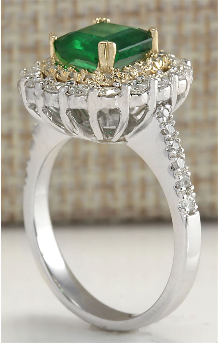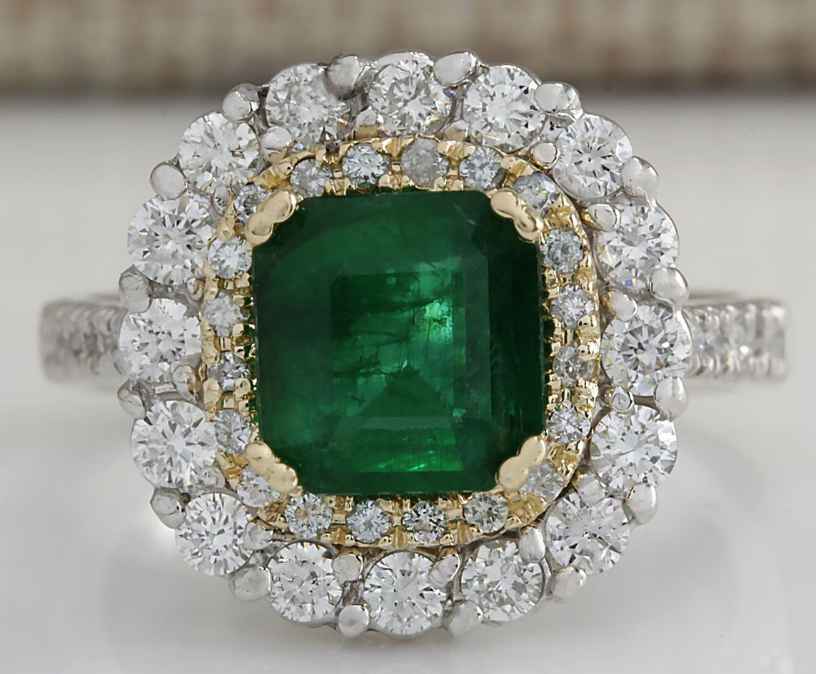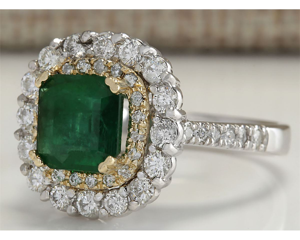 Stamped: 14K Ring Size: 6.75 Total Ring Weight: 6.5 Grams Diamond Weight: Total natural diamond weight is 1.05carat. SI1-SI2 clarity / G-H color Gemstone Weight: Total Natural Colombian Emerald Weight is 1.83ctw (Measures: 7.71x7.38mm) High End Gemstone! Face Measures: 15.37x14.95mm Main stone color: Green [SKU:702936]