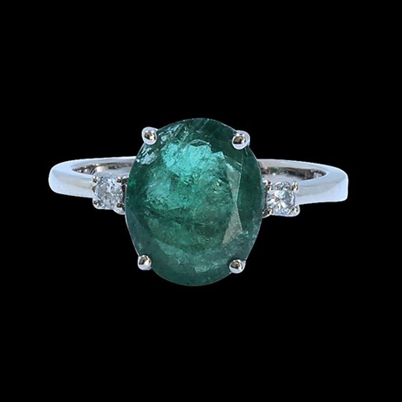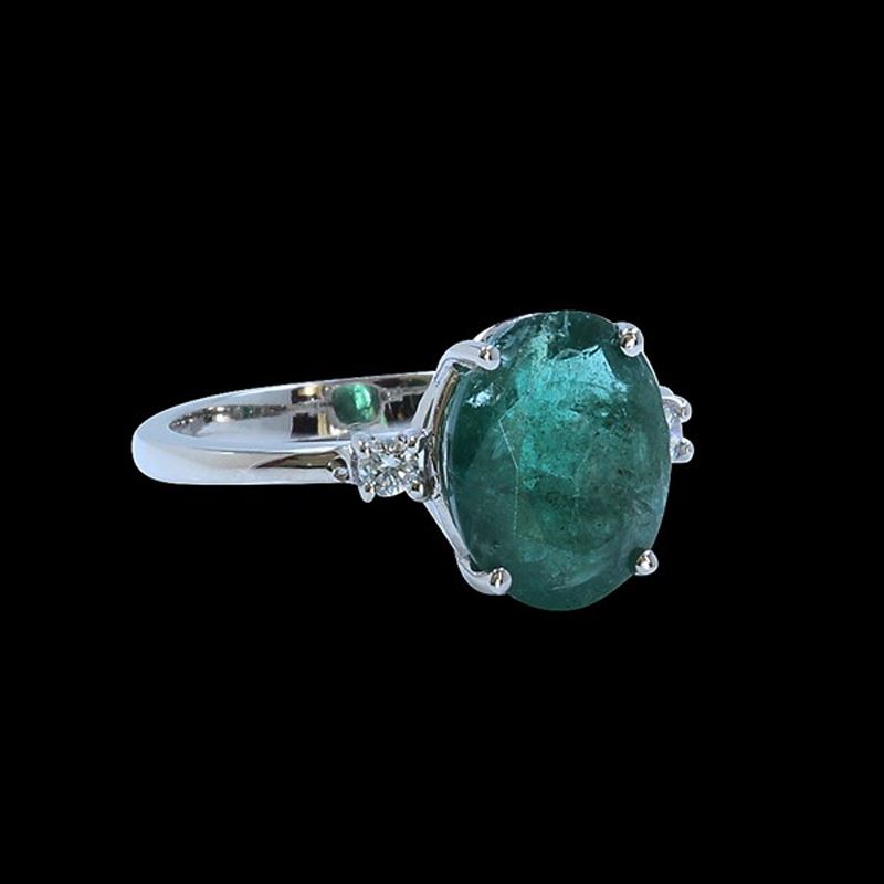 14KWHITE GOLD NATURAL COLUMBIAN EMERALD RING:2.12 GRAMS/COLUMBIAN EMERALD:2.89CT/ DIAMOND RD:0.08CT/#GVR1214