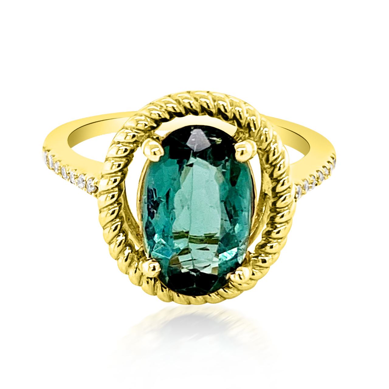 2.8ct Natural GREEN TOURMALINE 14K Yellow Gold 3.51gm Diamond 0.08ct Ring #PJ4110