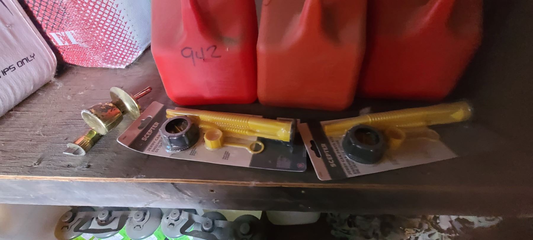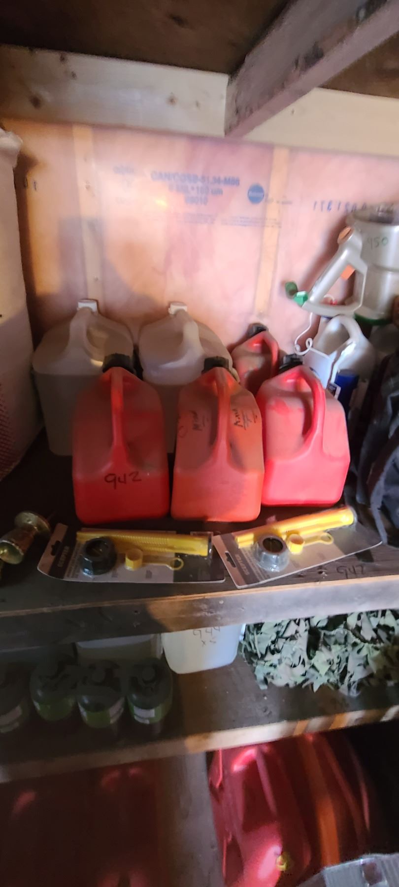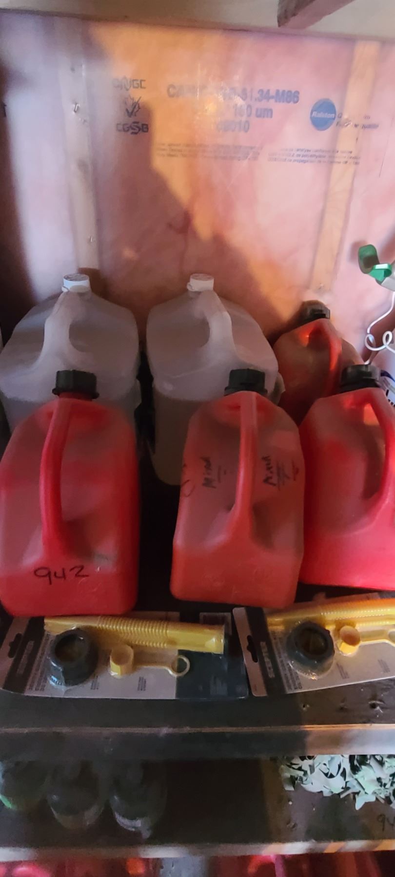 2- 9.46 LITERS OF KEROSINE AND SMALL EMPTY GAS CANS WITH PARTS