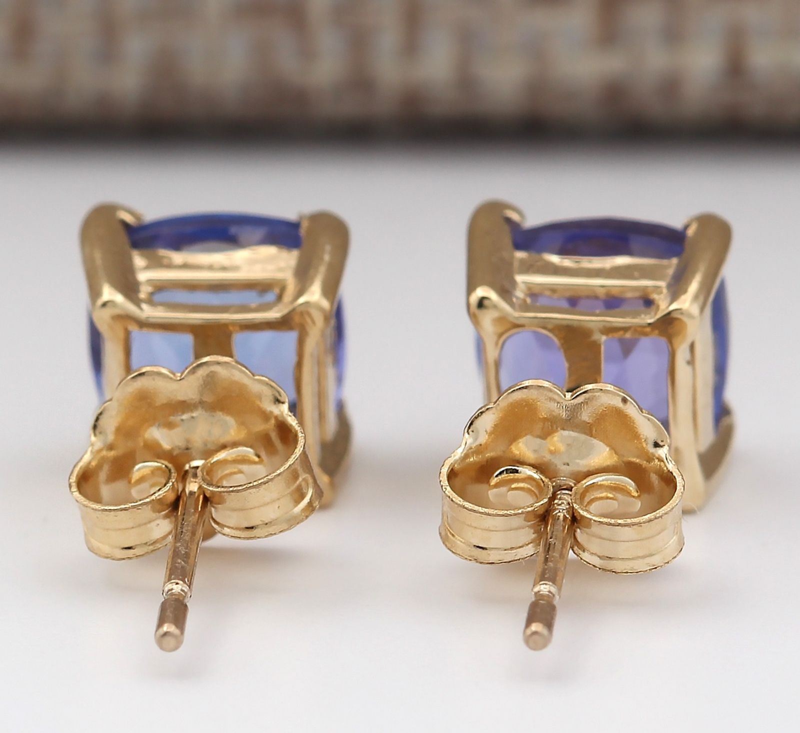 2.90 CTW Natural Blue Tanzanite Earrings 18K Solid Yellow Gold