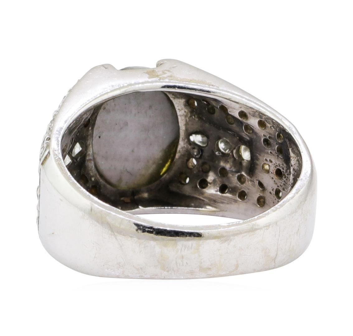 One ring featuring: 10KT white gold weighing 5.1 grams containing one oval cabochon dyed cat's eye weighing 2.00ct and diamonds weighing 0.90ctw.