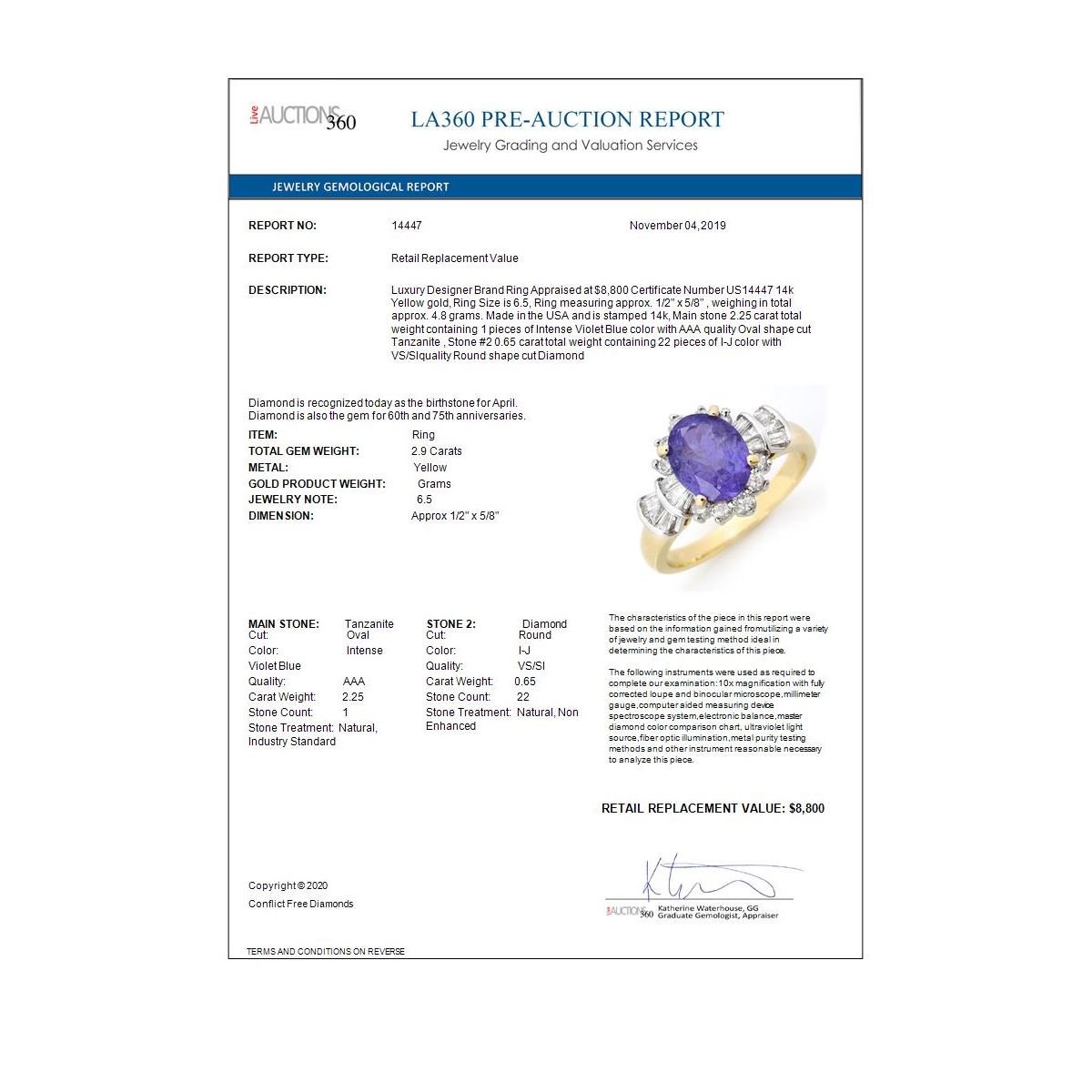 2.90 ctw Tanzanite & Diamond Ring 14K Yellow Gold