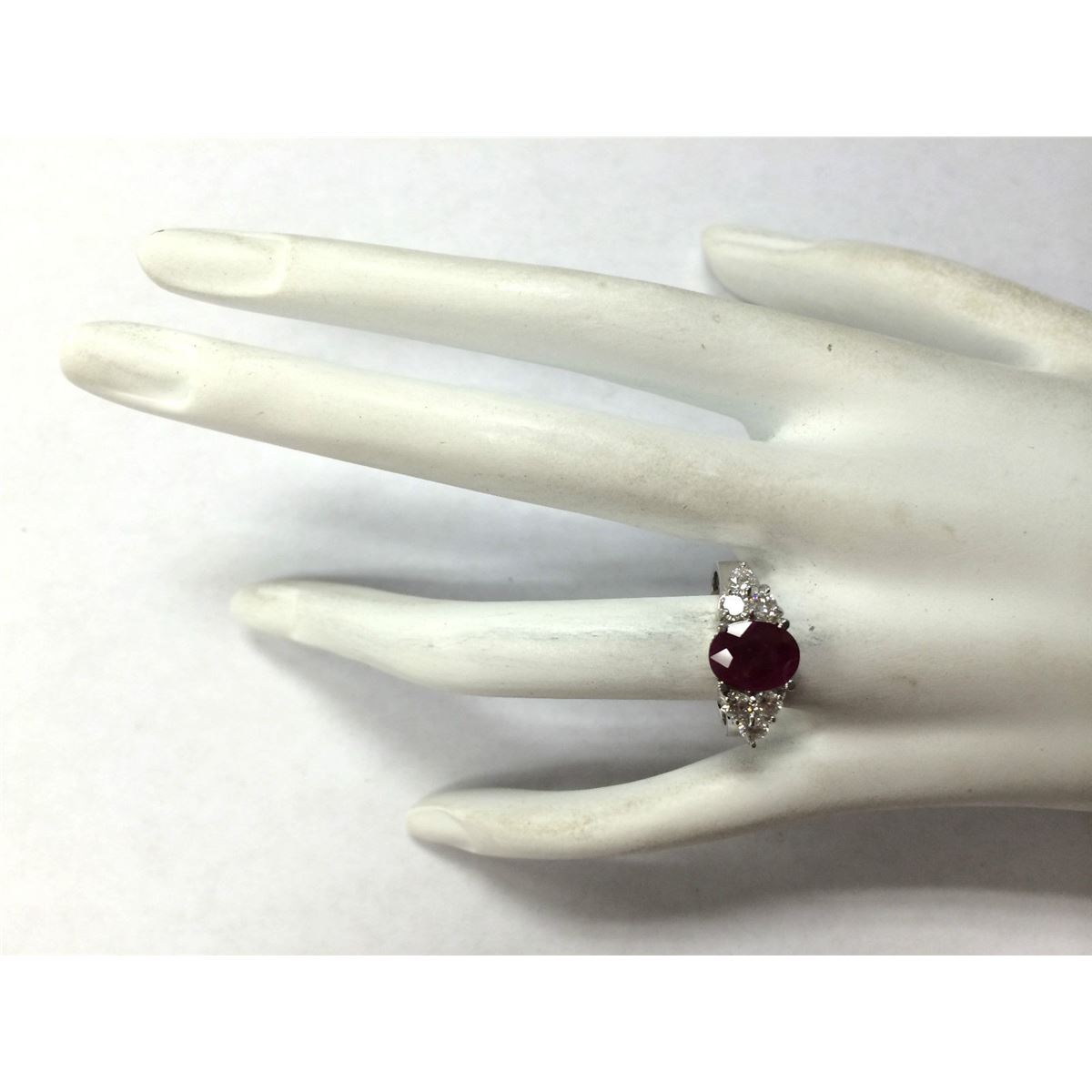 Stamped: 14K Ring Size: 7 Total Ring Weight: 4 Grams Diamond Weight: Total natural diamond weight is .65carat. SI1-SI2 clarity / G-H color Gemstone Weight: Total Natural Ruby Weight is 2.25ctw (Measures: 9.13x7.04mm) (No glass or led filling , heated only african ruby) Face Measures: 9.13x19.50mm Main stone color: Red [SKU:702934]