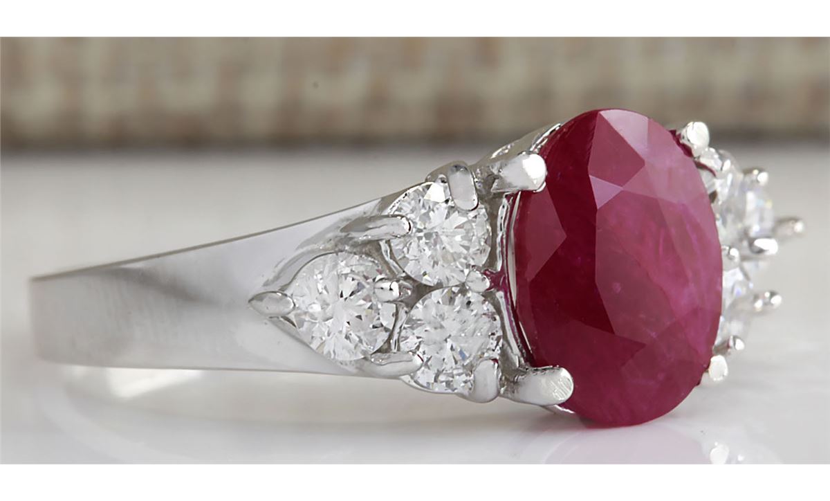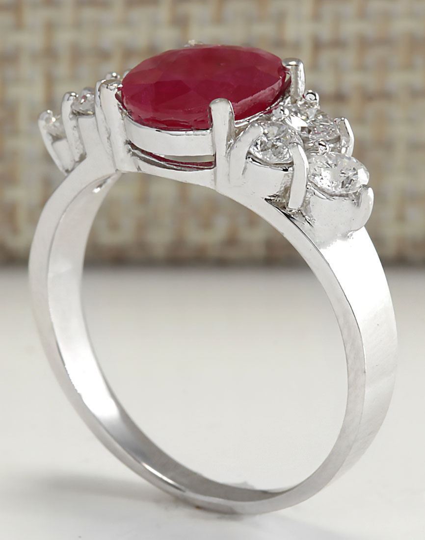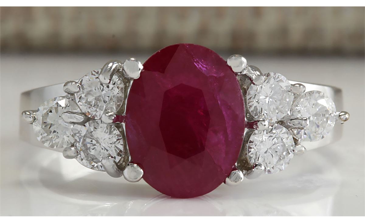 Stamped: 14K Ring Size: 7 Total Ring Weight: 4 Grams Diamond Weight: Total natural diamond weight is .65carat. SI1-SI2 clarity / G-H color Gemstone Weight: Total Natural Ruby Weight is 2.25ctw (Measures: 9.13x7.04mm) (No glass or led filling , heated only african ruby) Face Measures: 9.13x19.50mm Main stone color: Red [SKU:702934]