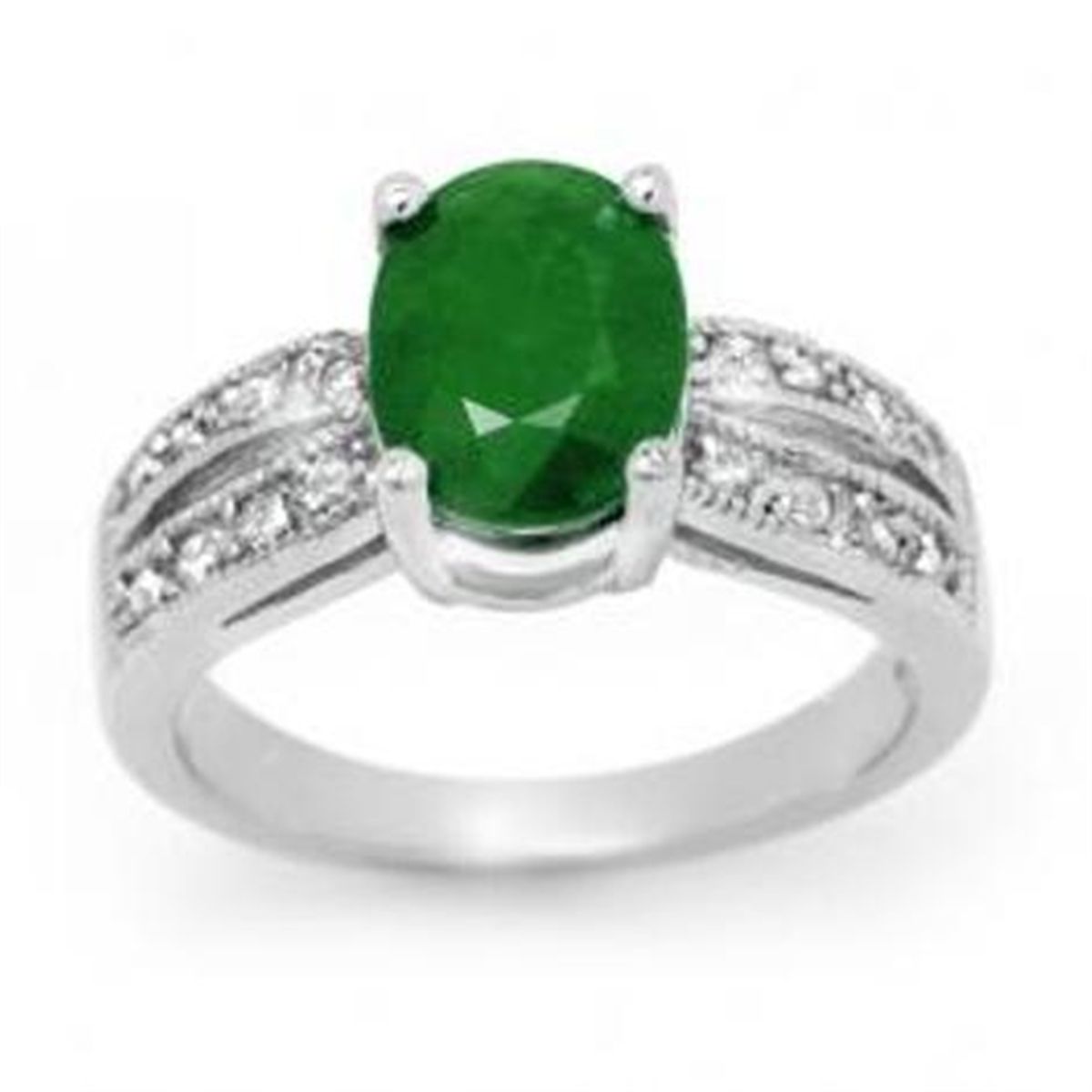 Diamond: 16 Round cut @ 0.32 ctw Clarity: SI-I Color: H-K Gemstone: Natural Emerald Gemstone color: GreenGemstone quality: Good-to-Very Good Gemstone Cut & Weight: 1 Oval cut @ 2.60 ctw Metal Purity & Color : 14K Gold-White Gold weight: 4.70 grams Ring size (US): 6.75Dimension: Approx. 3/4" x 1/2"