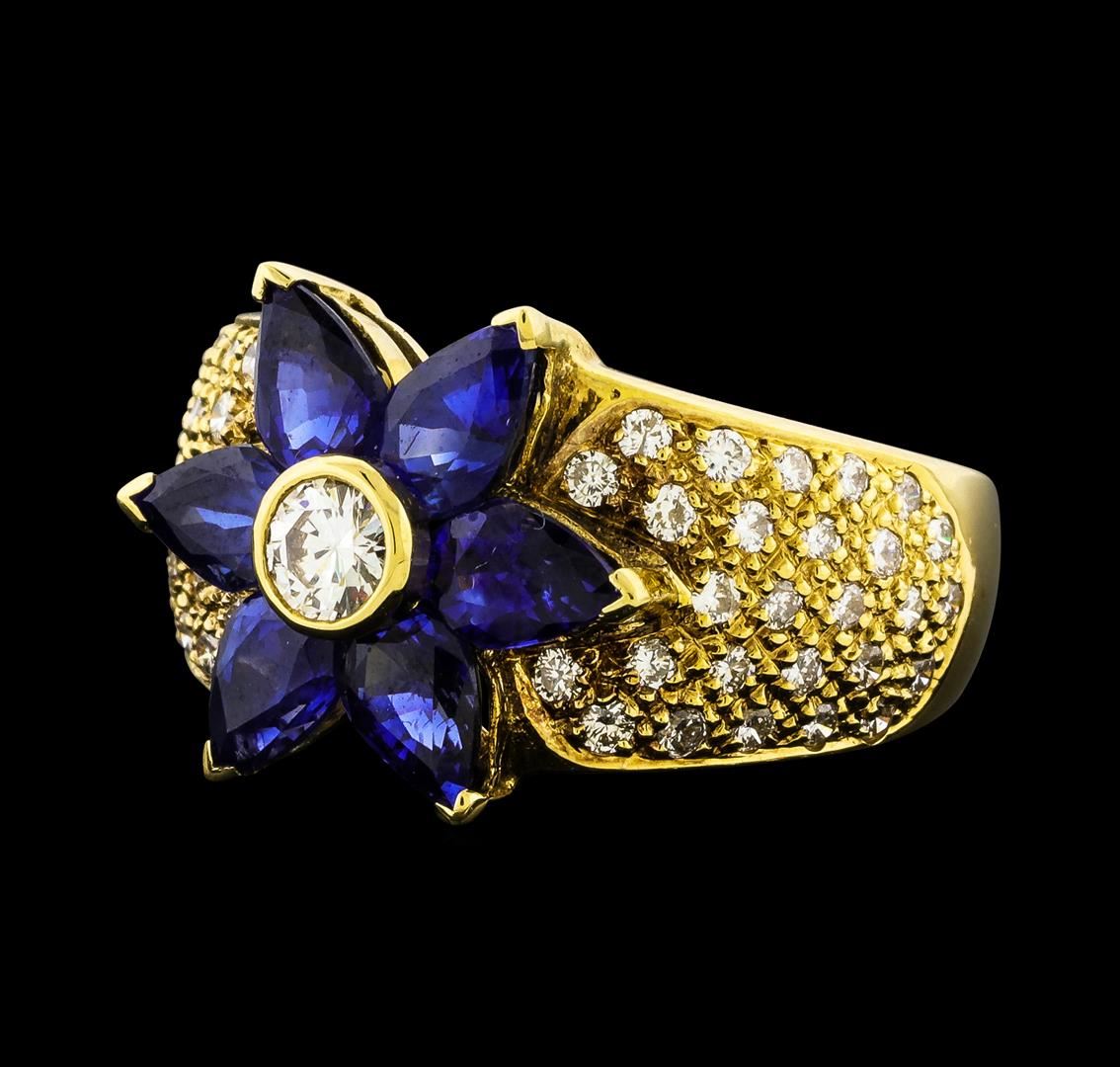 One ring featuring: 18KT Yellow Gold containing Sapphire with a total weight of 2.93ct and Diamonds with a total weight of 0.68ct. Total Weight of Ring: 7.1 grams.
