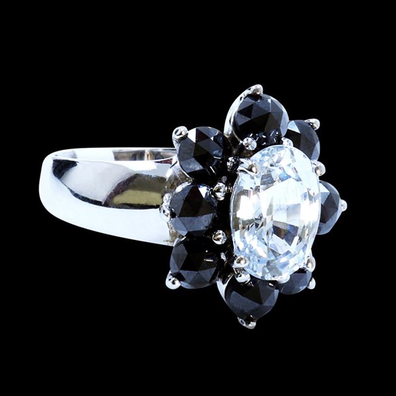 14K WHITE GOLD NATURAL WHITE SAPPHIRE RING:5.55 GRAMS/WHITE SAPPHIRE:2.93CT/BLACK DIAMOND:2.85CT/#GVR1062