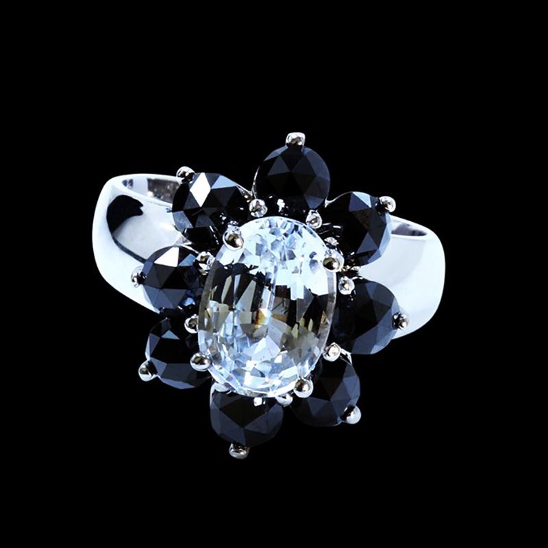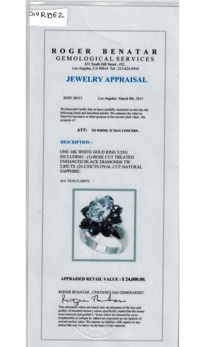 14K WHITE GOLD NATURAL WHITE SAPPHIRE RING:5.55 GRAMS/WHITE SAPPHIRE:2.93CT/BLACK DIAMOND:2.85CT/#GVR1062