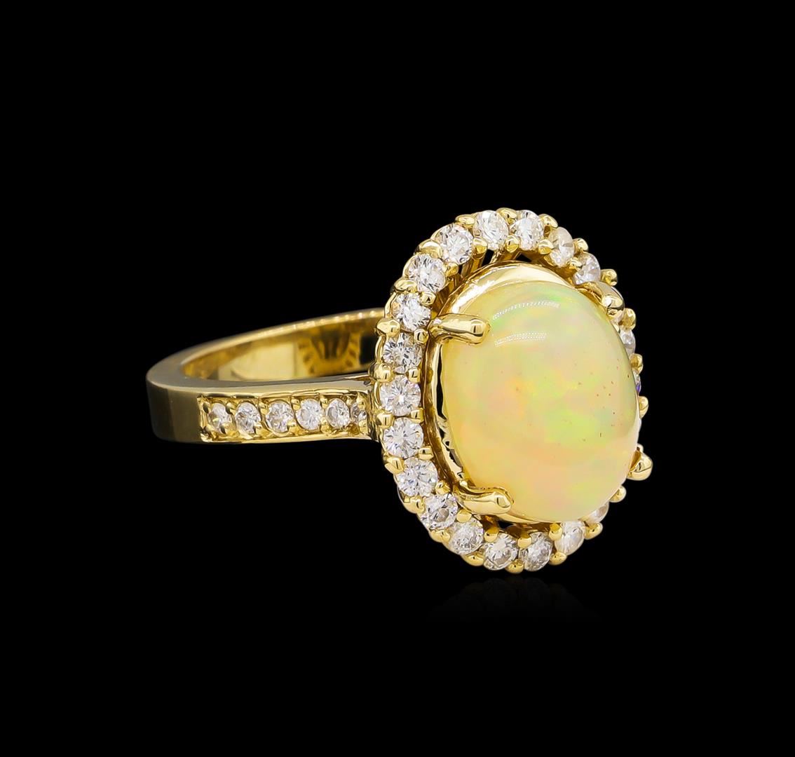 One ring featuring: 14KT yellow gold weighing 6.23 grams containing one opal with a total weight of 2.94ct and side diamonds with a total weight of 0.52ct.