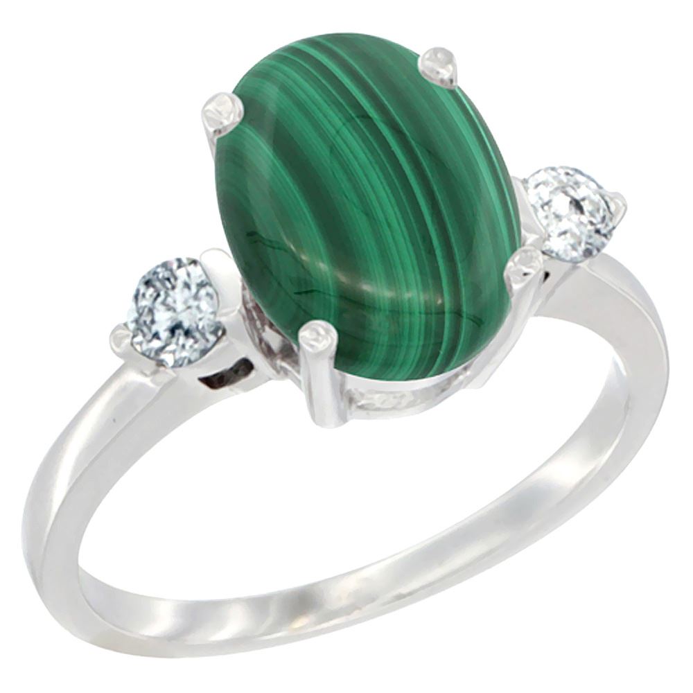 REF-66F8N - SKU: SC-CW44725218 ---- 2.95 CTW Malachite & Diamond Ring 14K White Gold