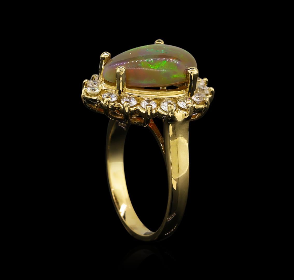 One ring featuring: 14KT yellow gold weighing 6.47 grams containing one opal with a total weight of 2.95ct and side diamonds with a total weight of 0.66ct.