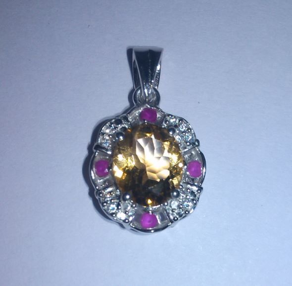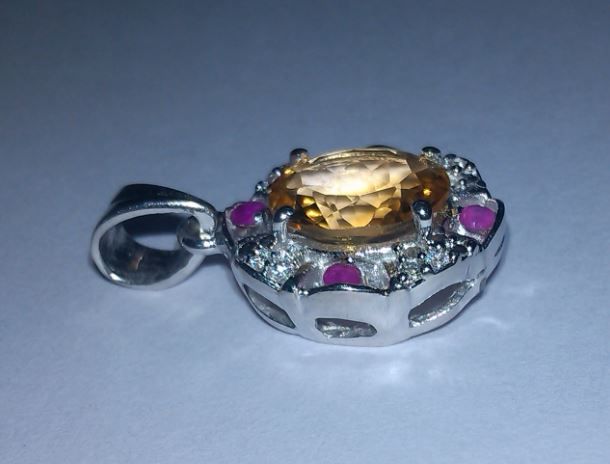 2.950g Pendant of Citrine, Ruby and CZ Sterling 925 Silver