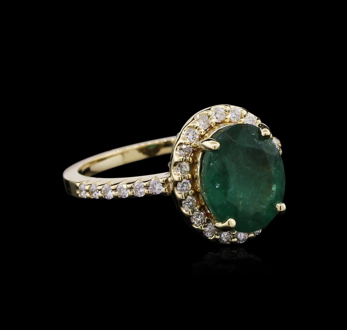 One ring featuring: 14KT yellow gold weighing 3.56 grams containing one emerald with a total weight of 2.95ct and diamonds with a total weight of 0.35ct.