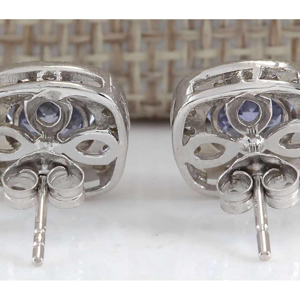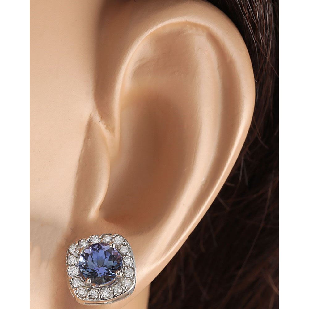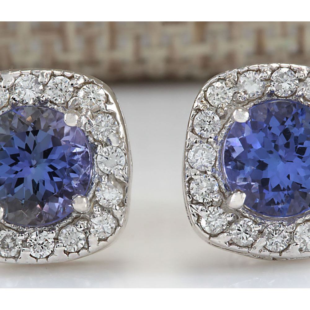 2.97 CTW Natural Tanzanite And Diamond Earrings 18K Solid White Gold