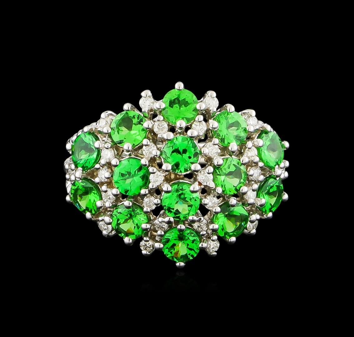 One Ring featuring: 14KT White Gold weighing 5.07 grams containing one Tsavorite-Multi center stone with a total weight of 2.97ct and Diamonds with a total weight of 0.25ct.
