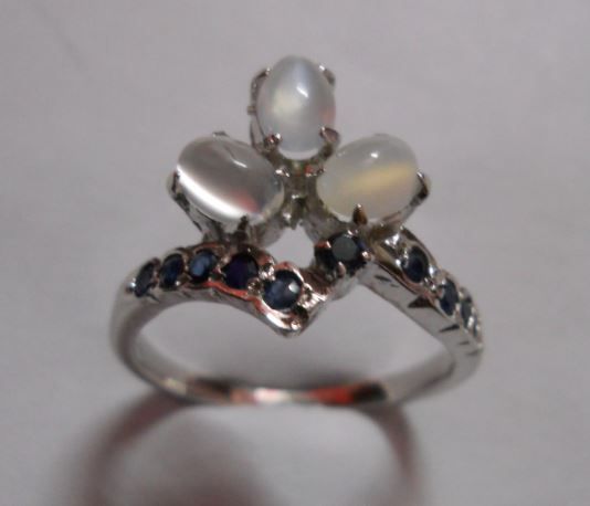 2.970g Ring of Moon Stone and Sapphire Sterling Silver