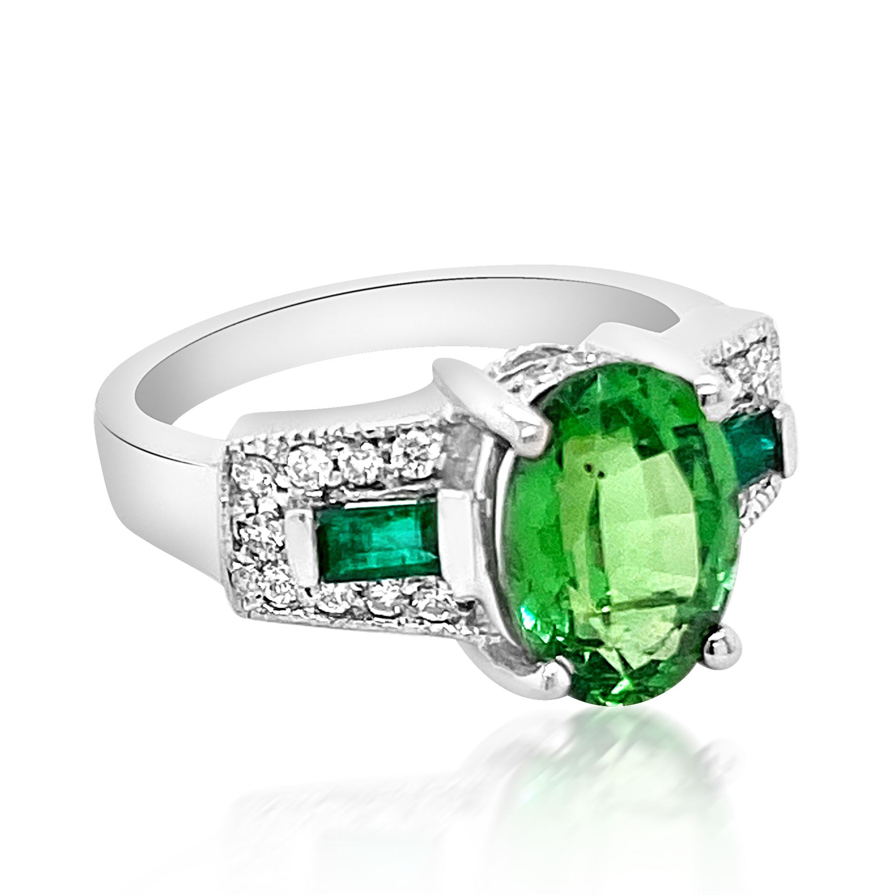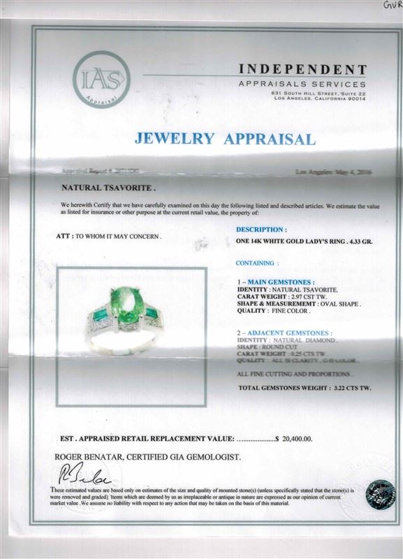 14K W/G RING: 4.33GRAM / TSAVORITE :2.97CT / DIAMOND RD :0.25CT /#GVR1497