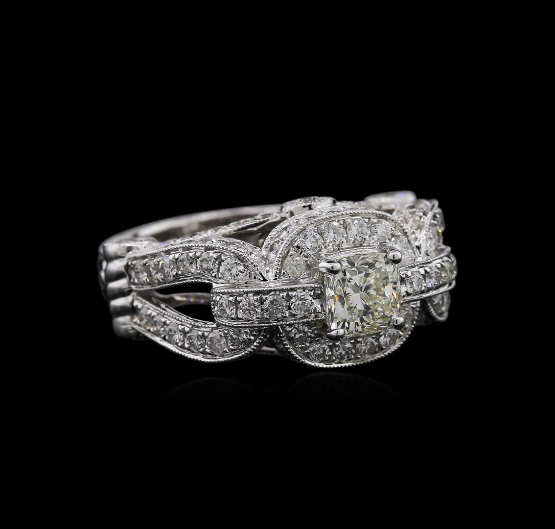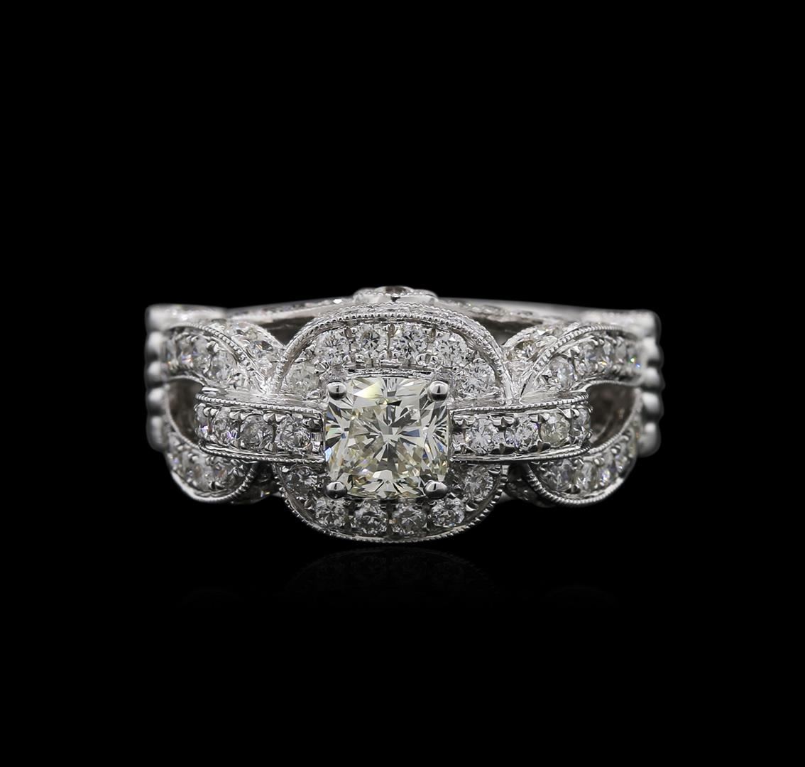 One ring featuring: 18KT white gold weighing 10.28 grams containing one diamond with a total weight of 1.01ct and side diamonds with a total weight of 1.96ct.